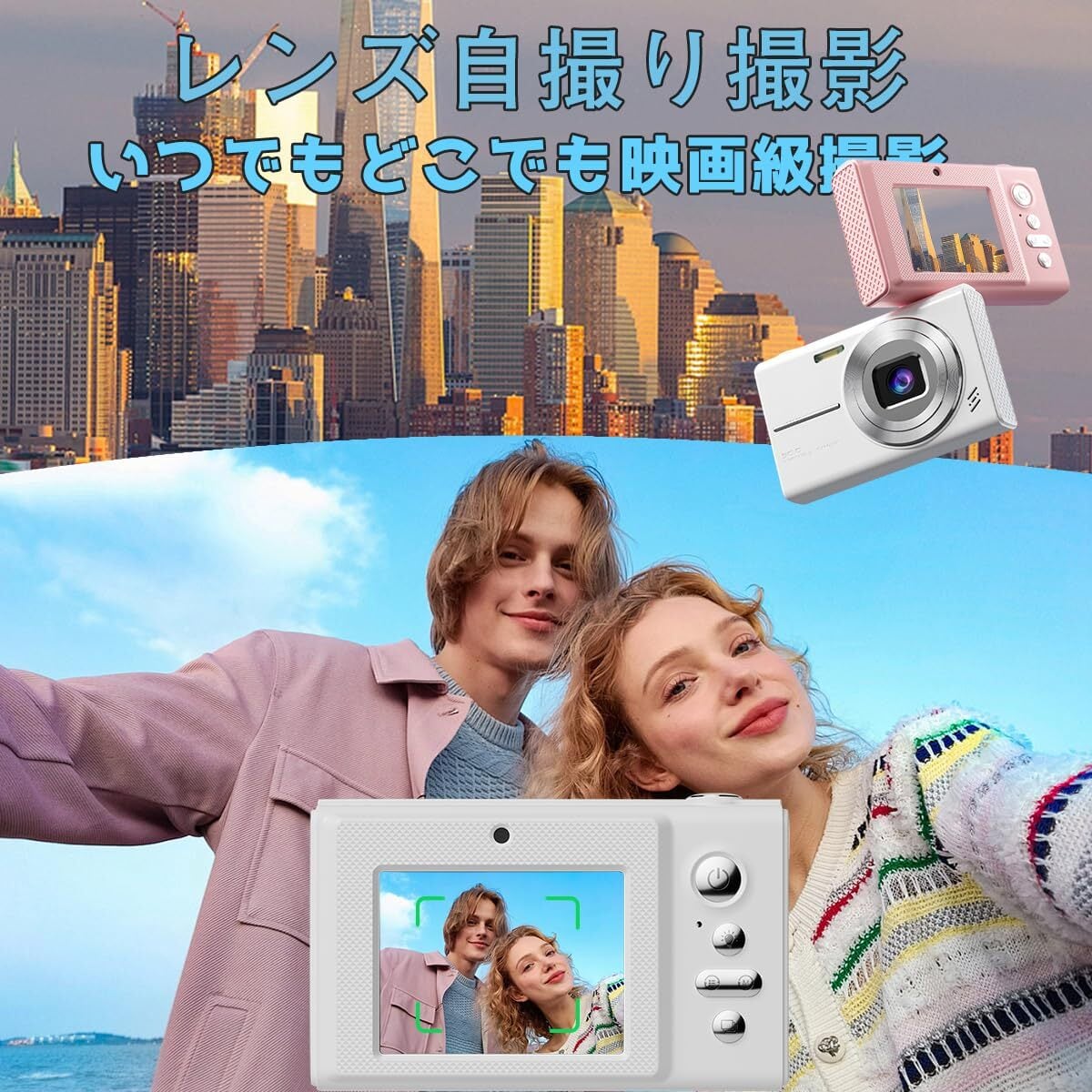 高性能な4Kデジタルカメラが、写真撮影の新しい世界を開きます。4800万画素の高解像度センサーを搭載し、鮮明で美しい写真を撮影できます。2.8インチの見やすい液晶画面で、撮影した写真をその場で確認可能。前後のダブルカメラ搭載により、自撮りも簡単です。1080Pの高画質動画撮影にも対応し、大切な瞬間を動画でも残せます。オートフォーカス機能により、初心者でも簡単にピントを合わせることができ、8倍デジタルズームで遠くの被写体も撮影可能。128GBの大容量SDカードが付属し、たくさんの写真や動画を保存できます。充電式バッテリーを採用し、外出先でも安心して使用できます。コンパクトで軽量な設計により、持ち運びも便利。カメラ初心者の方や、日常的な写真撮影を楽しみたい方におすすめのデジタルカメラです。