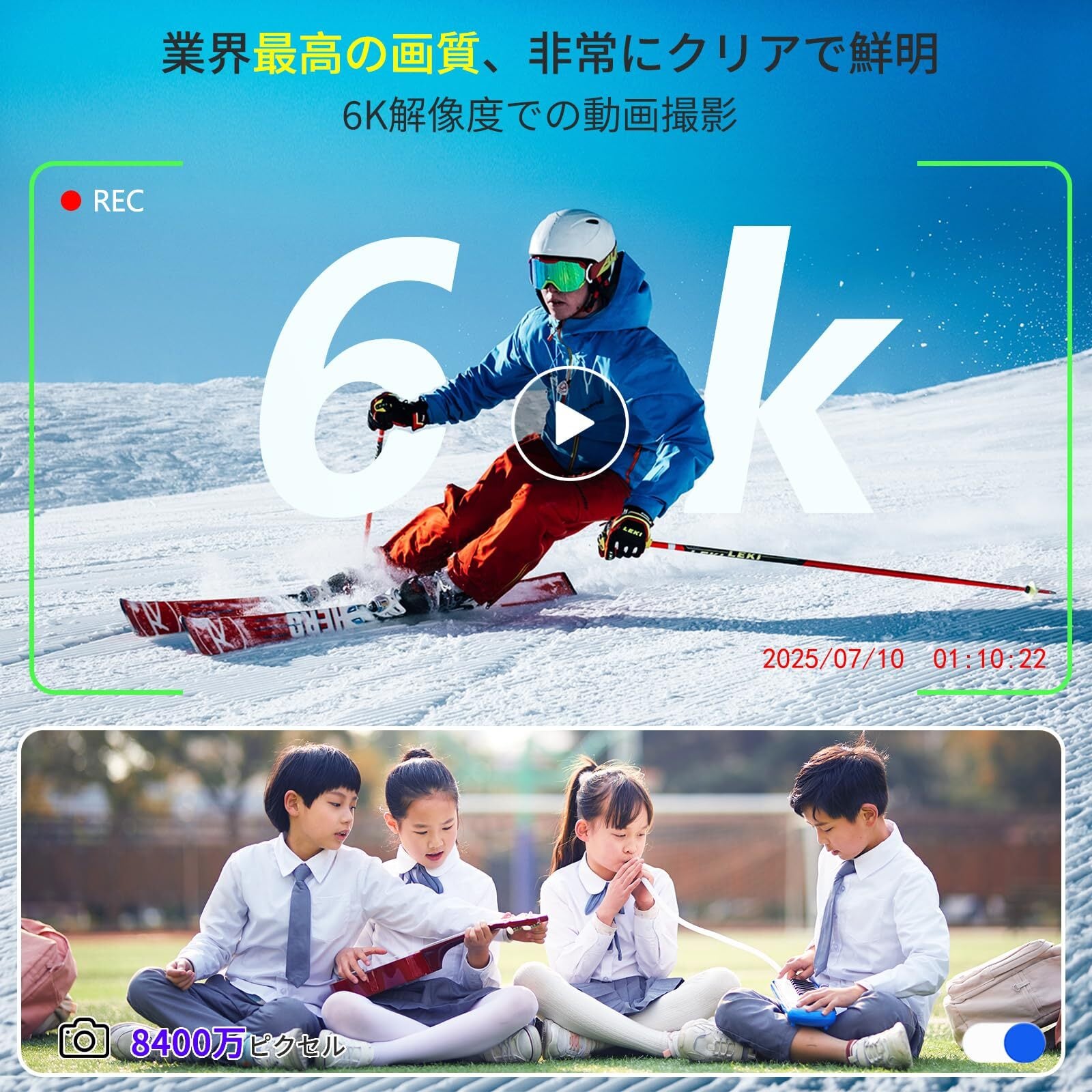 【最適な贈り物】旅行や日常使用に最適なコンパクトサイズ(11.8×8×8cm)で、バッグにすっきり収納可能。内容物:6Kデジタルカメラ本体、リチウムバッテリー×2、32GB TFカード×1、レンズ保護カバー×1、USBケーブル×1、充電器×1、レンズフ一ド*1、レンズクリーニングクロス×1、取扱説明書×1、カメラストラップ×1。24時間365日の安心サポートでお客様を徹底サポート。コンテンツクリエイター&初心者に最適なカメラです。
