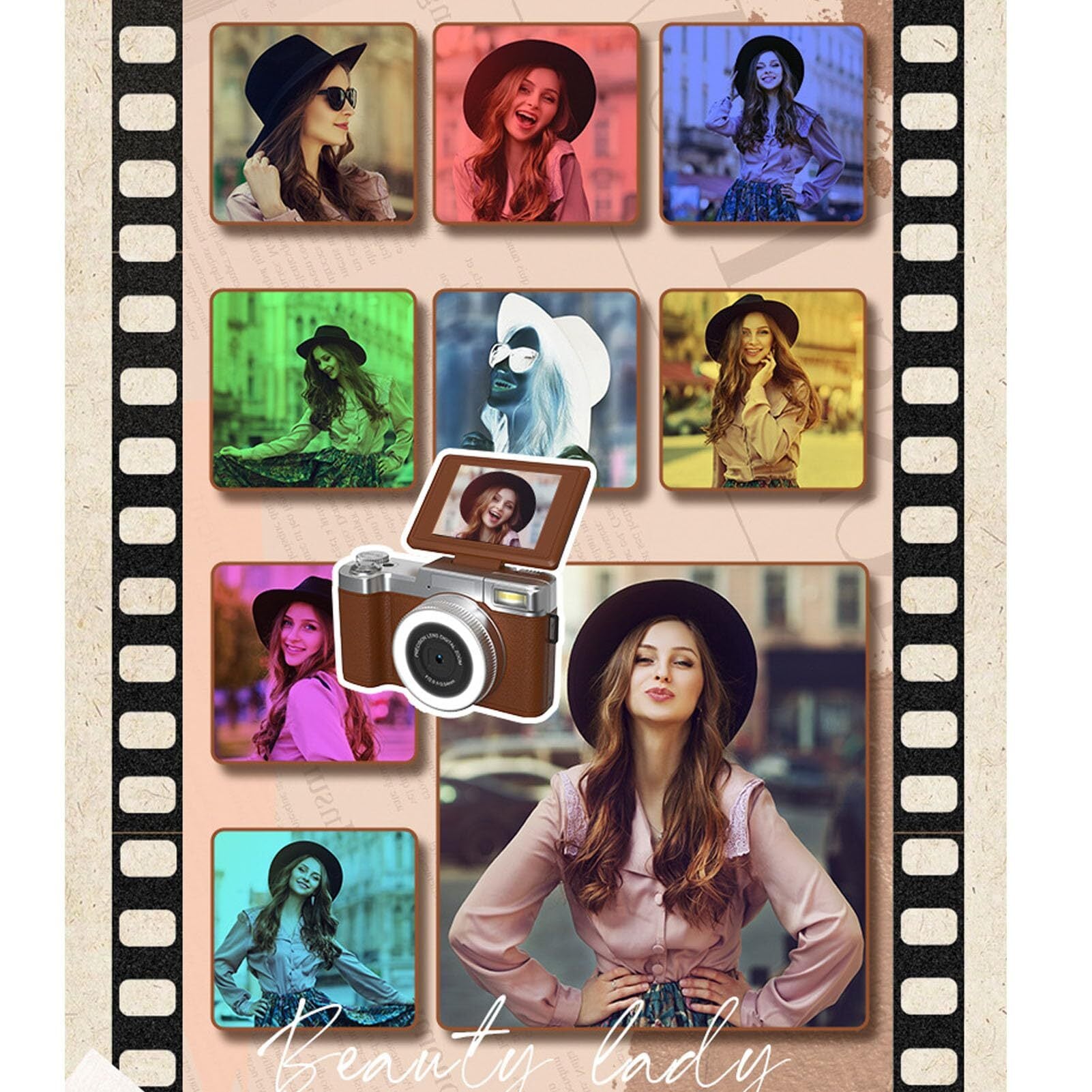 16のレトロフィルター:このカメラは、16のユニークなフィルターと8つのシーンモードを備えており、人気のY2K美学とテクスチャのようなフィルムを再現しています。芸術的でノスタルジックな写真やビデオを楽に制作します。