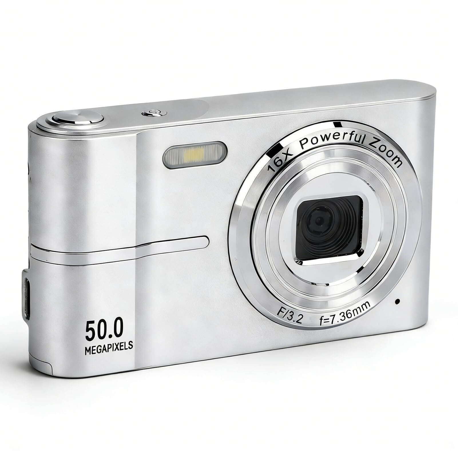 Acogedor 16xズームデジタルカメラ50MP FHD 1080Pオートフォーカス付きポータブルカメラと旅行写真用の2.4インチHDスクリーン (SILVER)