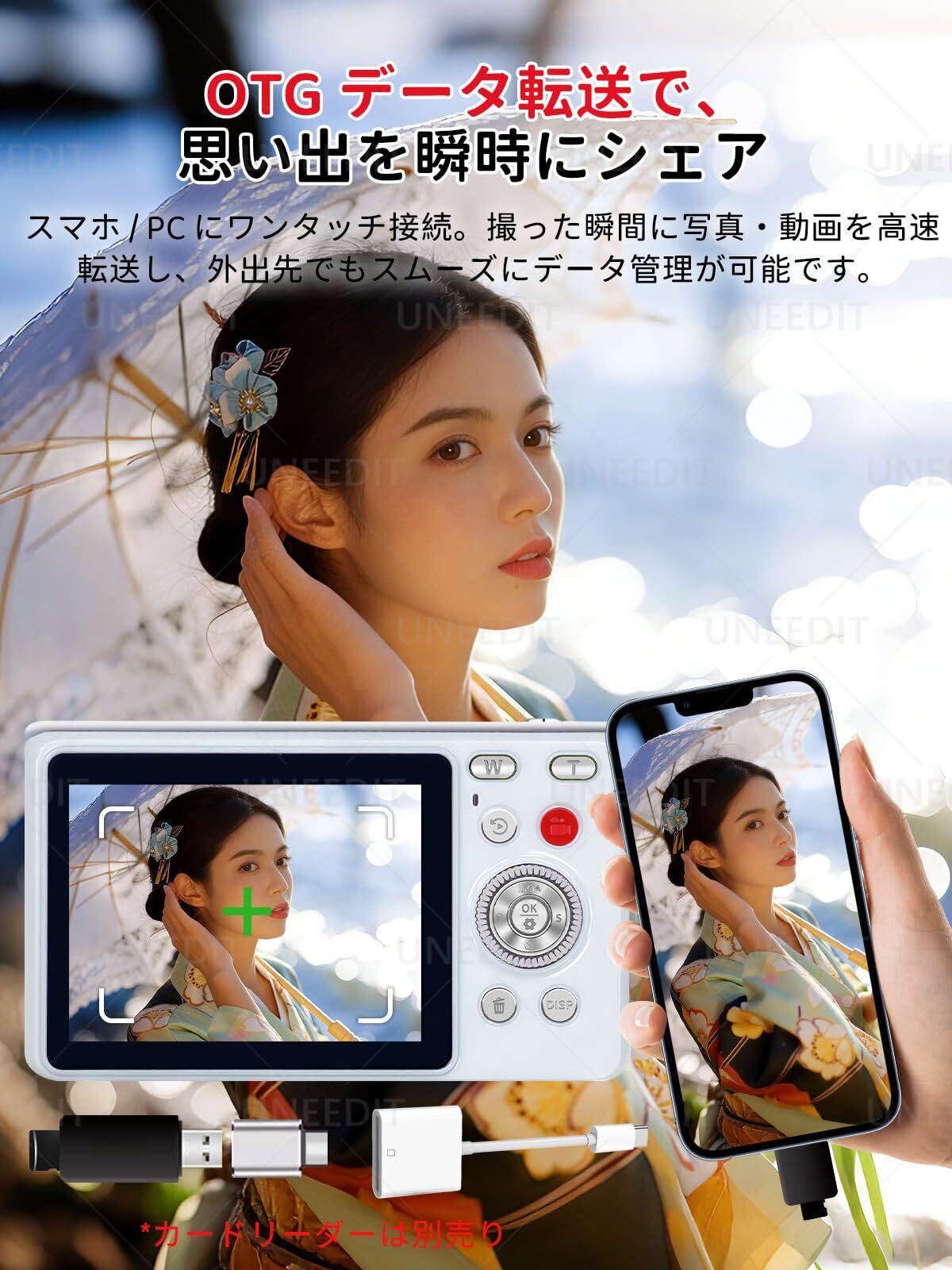【手軽に利用&64GBカード付】UNEEDITのこのデジカメは初心者のお子様や年配の方、学生向けとしてもオススメのデジタルカメラです。シンプル機能で操作が簡単です。シャッターボタンを押すと、素晴らしい瞬間を捉えることができます。さらに、64GBのマクロメモリーカードを同梱しており、何度もカードを交換する手間が不要、撮影機会を逃しません。