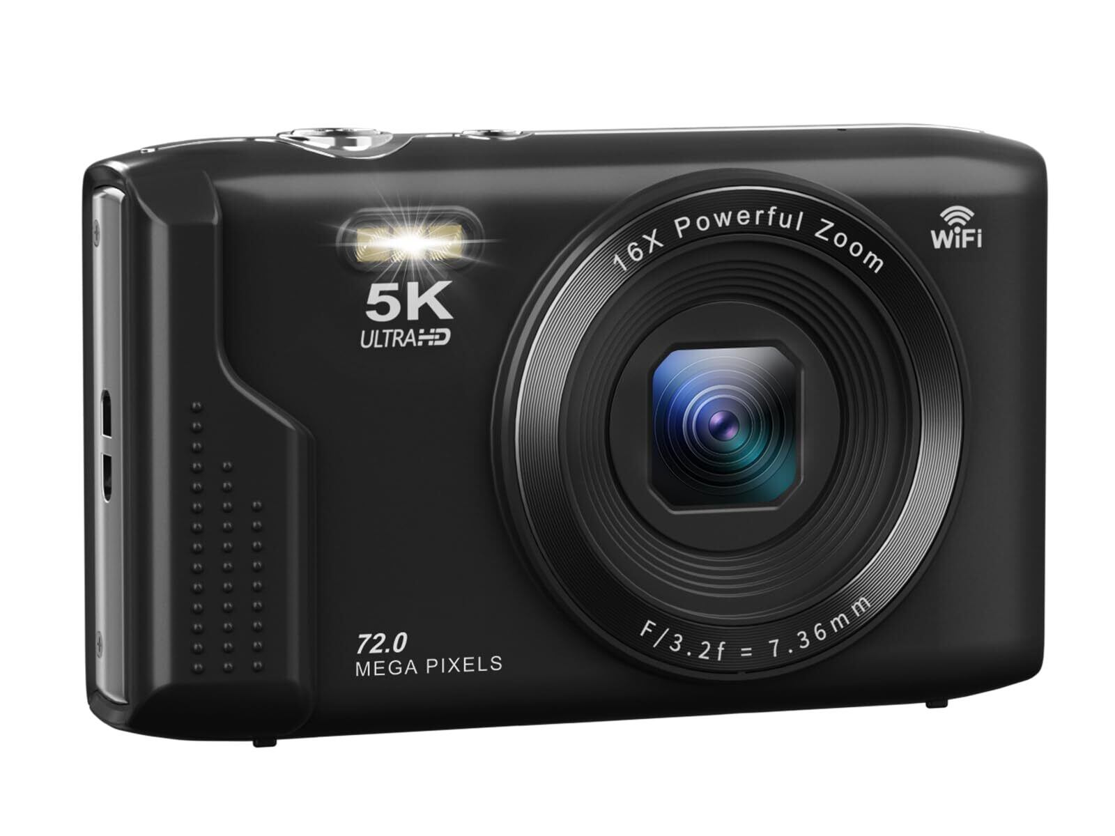 AiMike スマホに送れる デジタルカメラ 5K デジカメ WIFI転送機能 7200万画素 64GBマイクロSDカード付き 16倍デジタルズーム オートフォーカス機能 LEDライト ウェブカメラ 2.8インチ大画面 バッテリー2枚 コンパクト 子供や初心者向け 子供の日 クリスマスプレゼント ダーク・ブラック