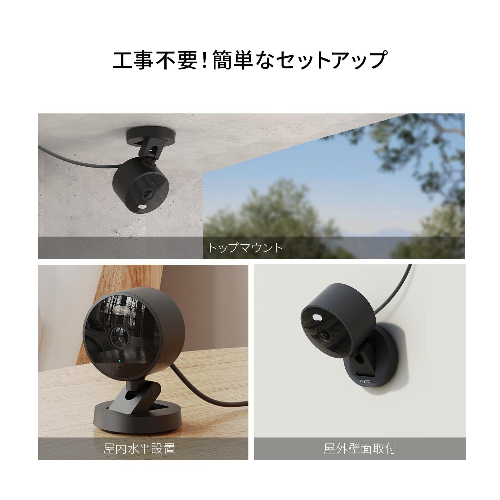 Aqara 防犯カメラ スマートカメラ G100 玄関 見守り ペット 監視カメラ 室外室内兼用 IP65防水 2K 3MP 140度超広角 フルカラー 赤外線白黒ナイトビジョン AI検知 プライバシー保護 Alexa対応 HomeKit対応 スマホ対応 アラート 高齢者 留守番 犬猫用 2.4GHz Wi-Fiカメラ ブラック
