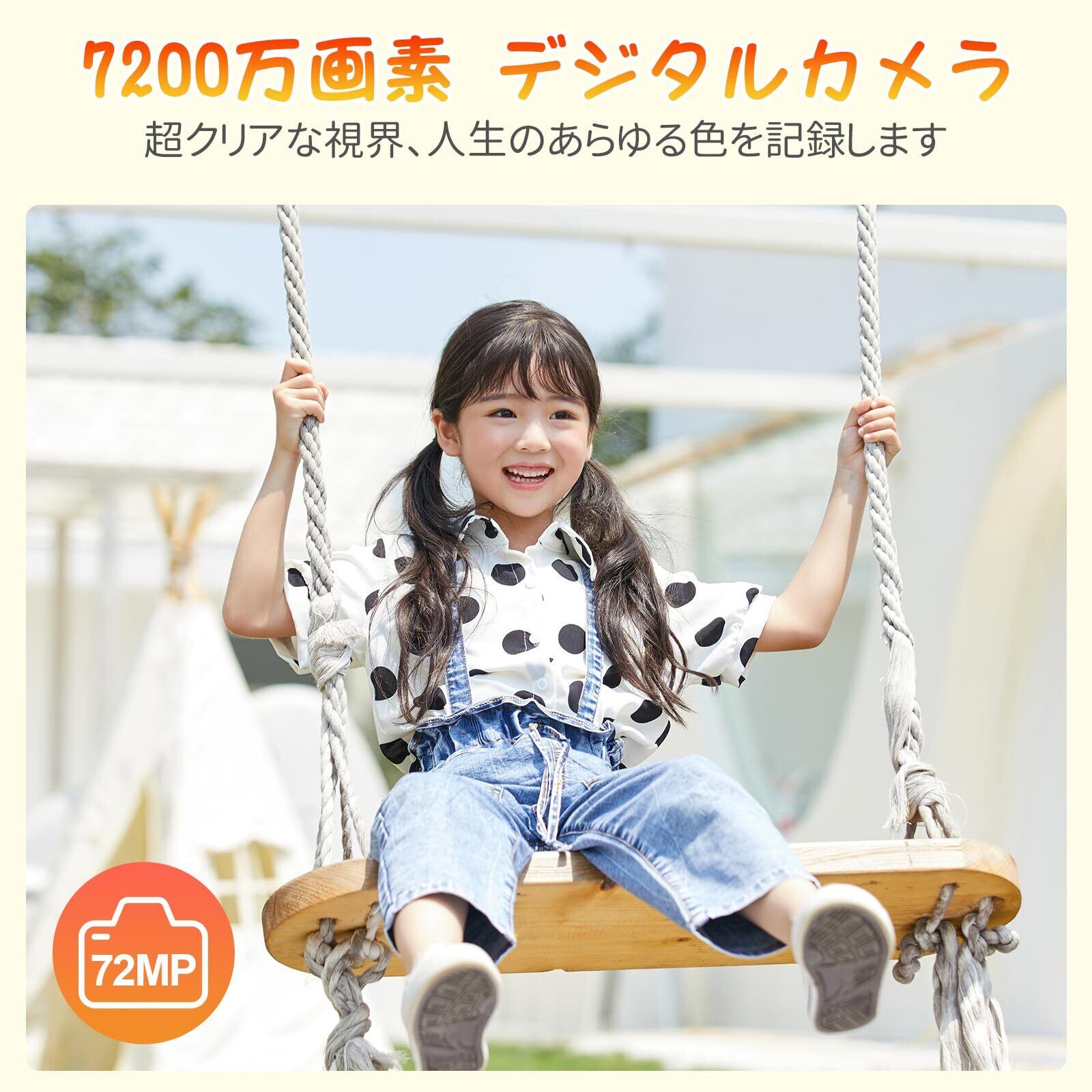 【7200万画素·操作簡単·32GBのSDカード付き】このデジタルカメラは、7200万画素の高品質CMOSセンサーを搭載しており、色再現の正確性を確保し、超高解像度の写真を呈示します。誕生日パーティーでも旅行でも、全ての素晴らしい瞬間を記録できます。ボタン数は少なく、操作は簡単で、写真に興味を持ち始めたばかりの初心者に最適です。また、32GBのMicroSDカードも付属していますので、ストレージ容量がたっぷりあり、写真を思う存分撮影して、美しい作品作りを心ゆくまで楽しめます。
