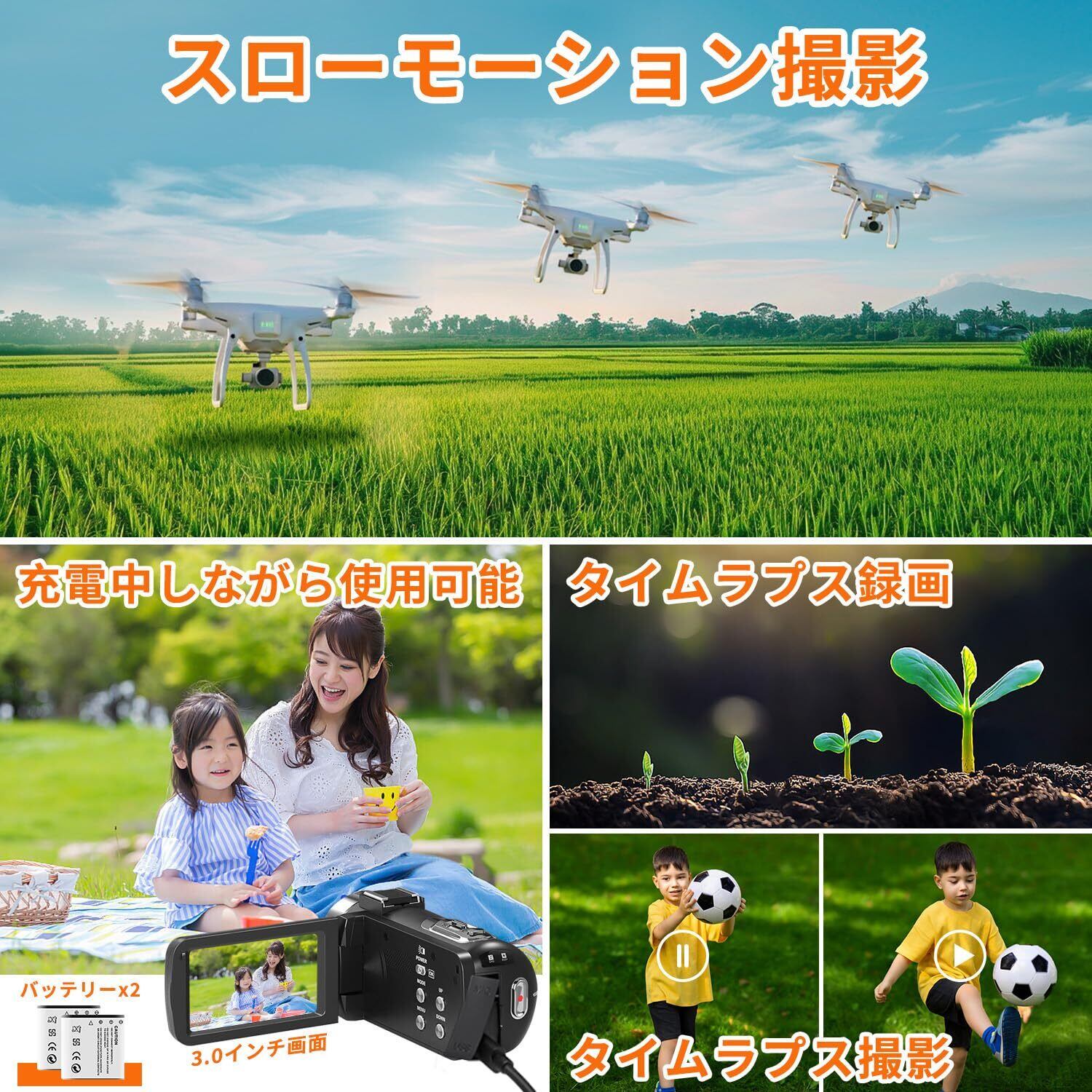 [バッテリー2個と64GB SDカード&外部マイク付属] 4Kビデオカメラにはバッテリーが2個搭載されており、電池切れの心配がなく、フル充電の場合、1個のバッテリーで60〜90分間連続使用できます。 充電しながらの録画にも対応しており、モバイルバッテリーを使っての充電も可能です。ビデオカメラに64GBSDカードが付属しています。最大 128GB の SD カードをサポートしています 。SDカード(Class10、読み込みスピード80M/S以上のものを推奨)を入れてからご使用ください。そして、ご使用になる前に、カードをフォーマットしてください。付き、ご使用になる前に、ちゃんと説明書を読んでください。何か不明でもございましたら、購入履歴ーメッセージにてに連絡してください。営業日24時間以内に対応致します。