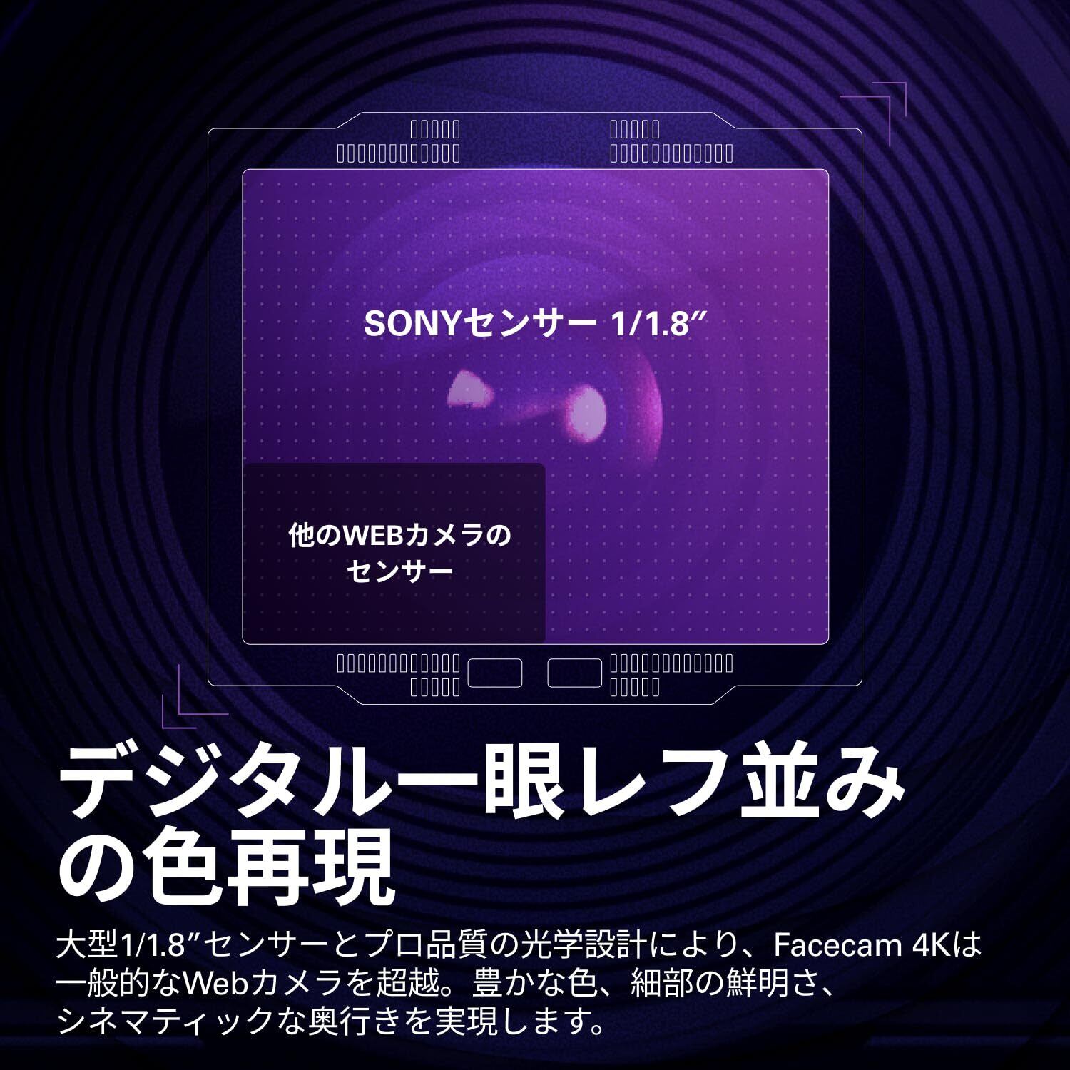 世界で唯一の4K60Webカメラ、Facecam 4Kは、信じられないほど高精細な映像を実現。超シャープなズーム、滑らかな60fps、デジタル一眼レフのような色と明瞭さ。