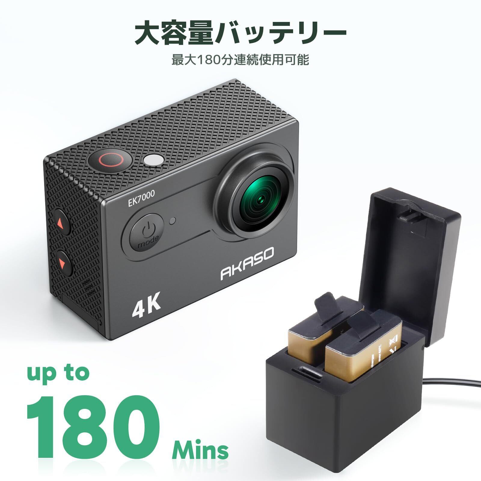 AKASO アクションカメラ EK7000 4K30FPS 20MP 水中カメラ WiFi搭載 外部マイク対応 40M防水 170度広角レンズ 1050mAhバッテリー2個付き アクションカム ウェアラブルカメラ 豊富なアクセサリー バイク/自転車に取り付け可能