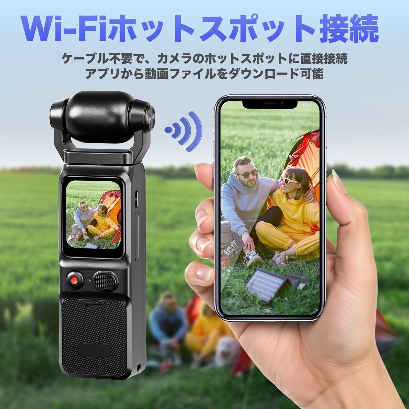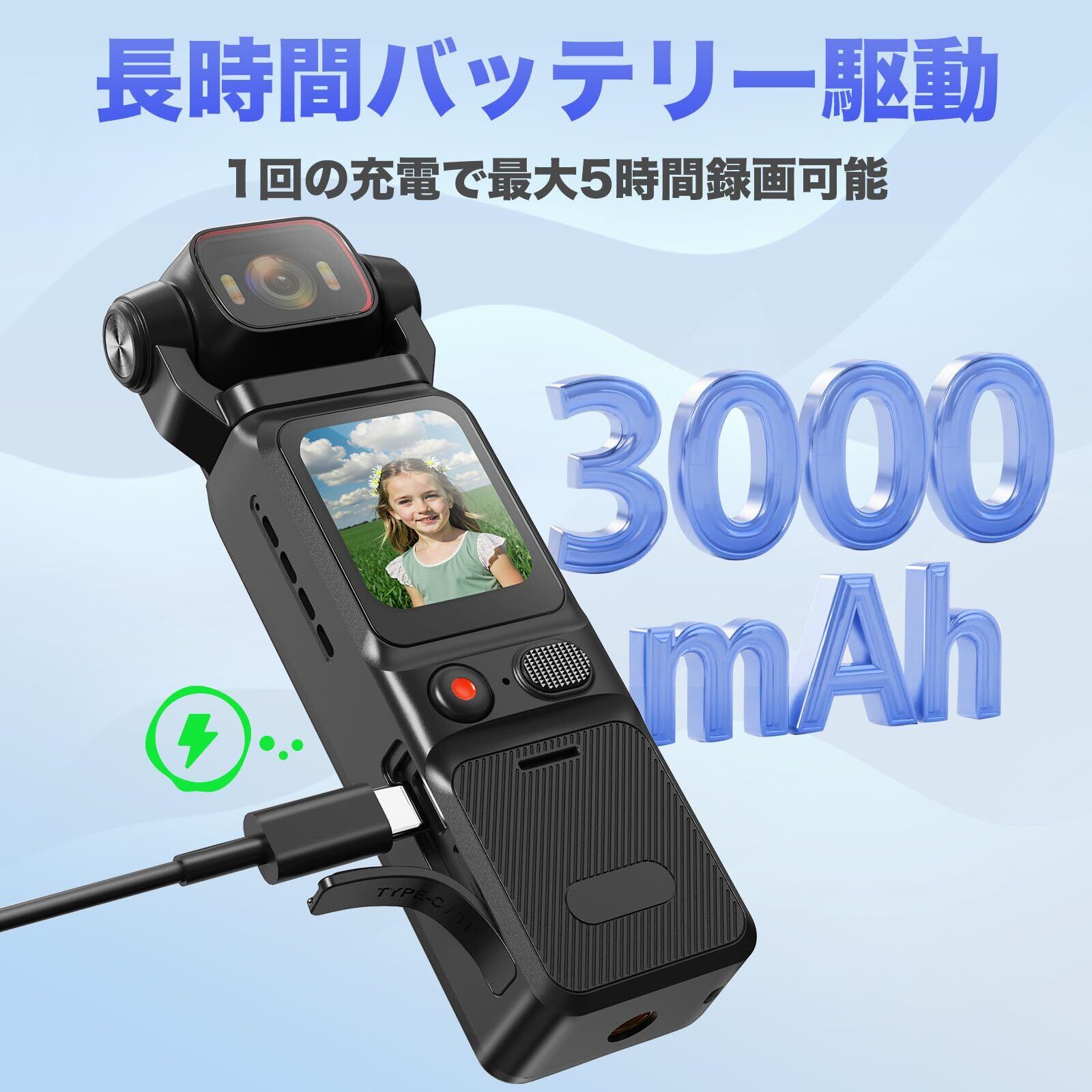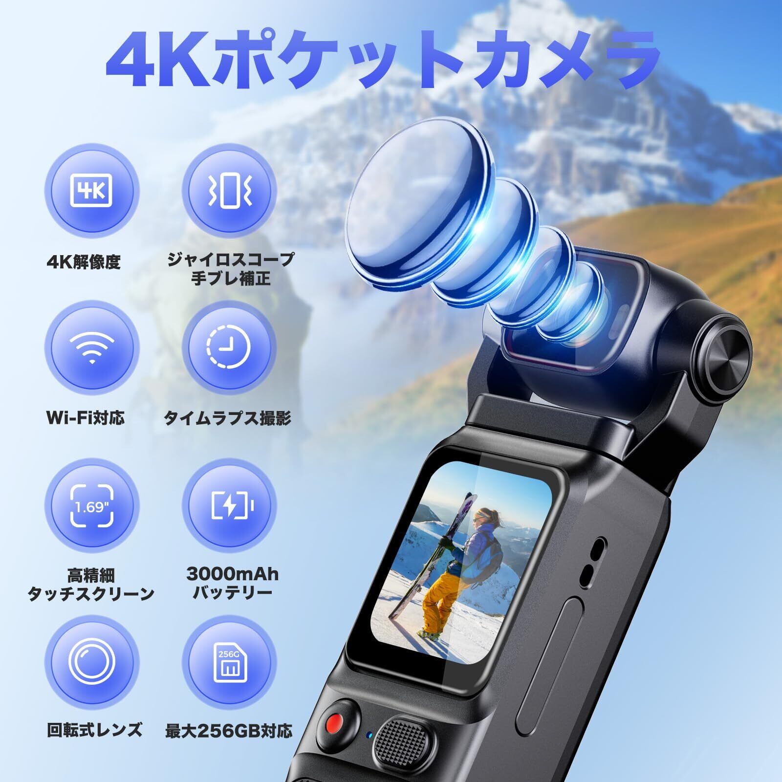 4K アクションカメラ ボディカメラ ポケットサイズ 180°回転レンズ ジャイロ手ブレ補正 1.69インチタッチ画面 3000mAh 5時間録画 WiFi タイムラプス Vlog スポーツ 業務用 日本語対応 初心者 コンテンツクリエイター向け