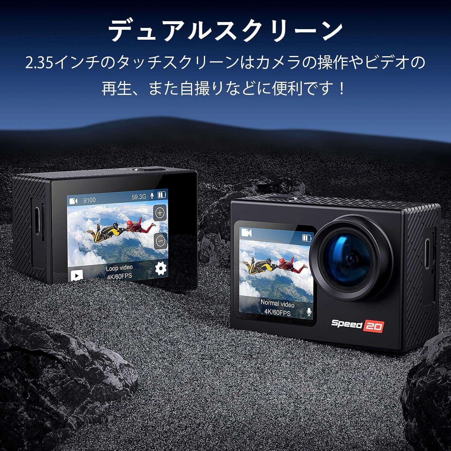 Speed20 アクションカメラ ウェアラブルカメラ 4K/60fps 超高清画質 6軸EIS手ブレ補正ウェアラブルカメラ 水中カメラ スポーツカメラ 防水ケース付きで40m防水 1350mAh大容量バッテリー スマホ連携アプリ対応アクションカム 前后2つのタッチスクリーン 170°広角レンズ 5倍ズーム アクションカメラ 自転車 登山 スキー ダイビング