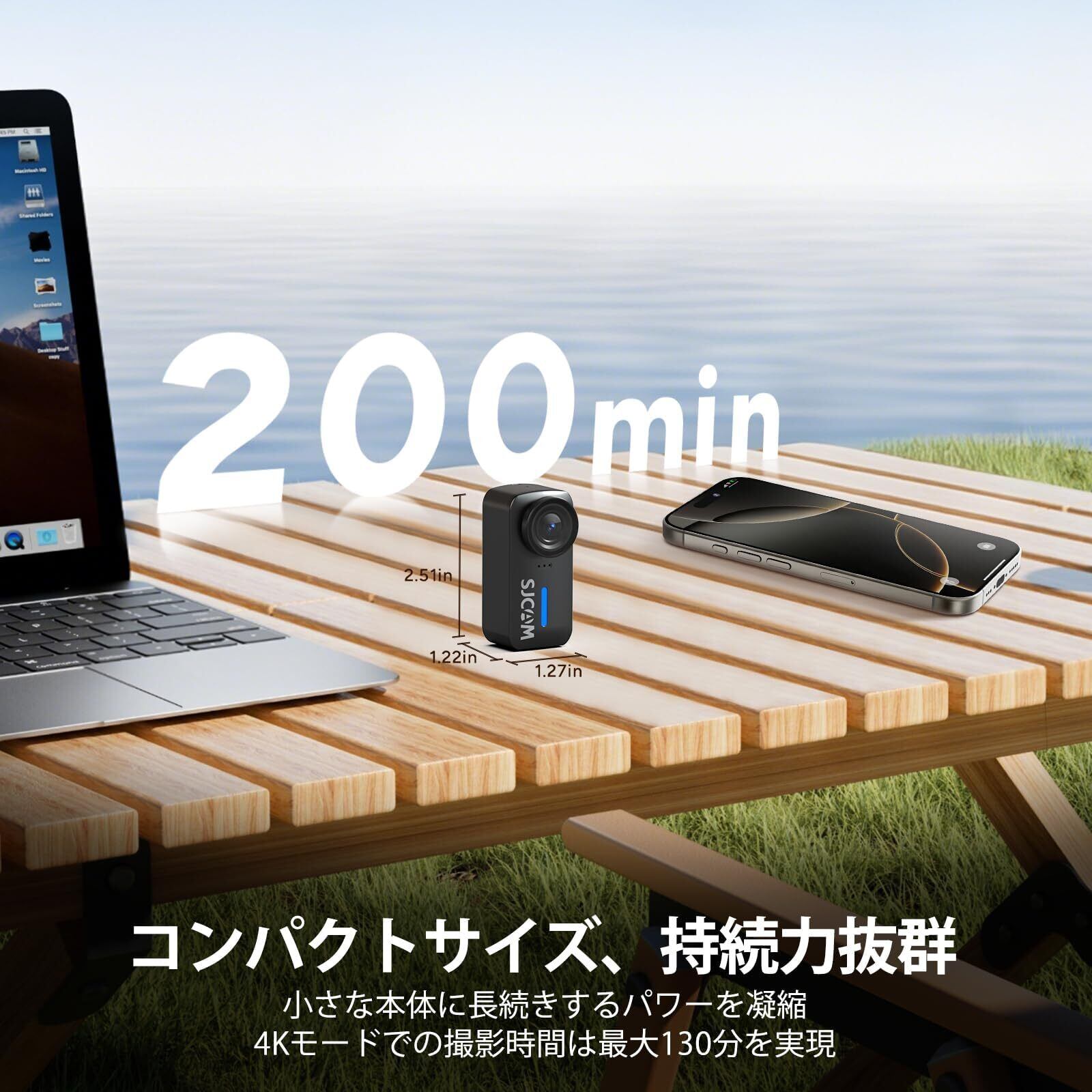 【高画質センサーと広角レンズで、思い出を鮮明に】 週末のキャンプ場で見上げる星空。このアクションカメラなら、135°広角レンズで広がる景色を捉えながら、1/3型CMOSセンサーが細部まで鮮明に記録します。大切な思い出を、高画質で残したい方に。