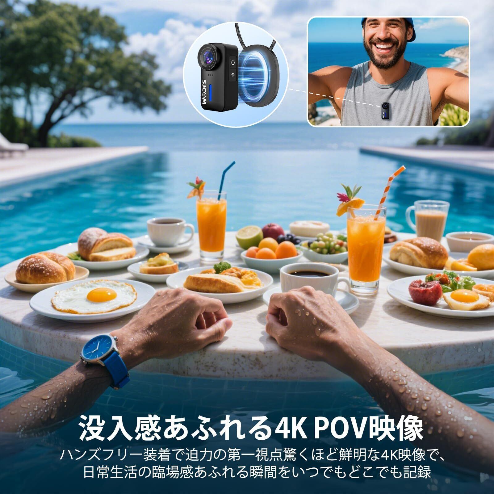 SJCAM C110 Pocket ボディカメラ|4K 200分連続撮影対応|超小型アクションカメラ Vlog用|手ブレ補正 8倍ズーム|30m防水 ウェアラブルカメラ|135°広角 f/2.0レンズ|バイク/旅行/日常撮影用|磁気マウント