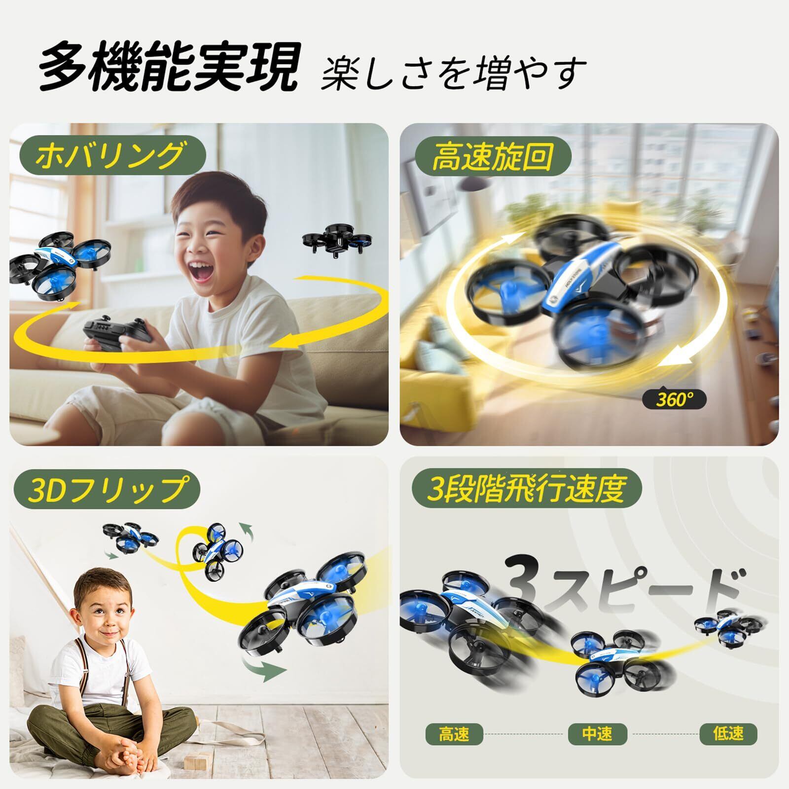 【飛行時間27分】ミニドローンにバッテリー3個付き、最大の飛行時間が27分間まで延長でき、楽しい飛行体験をより長い提供します。