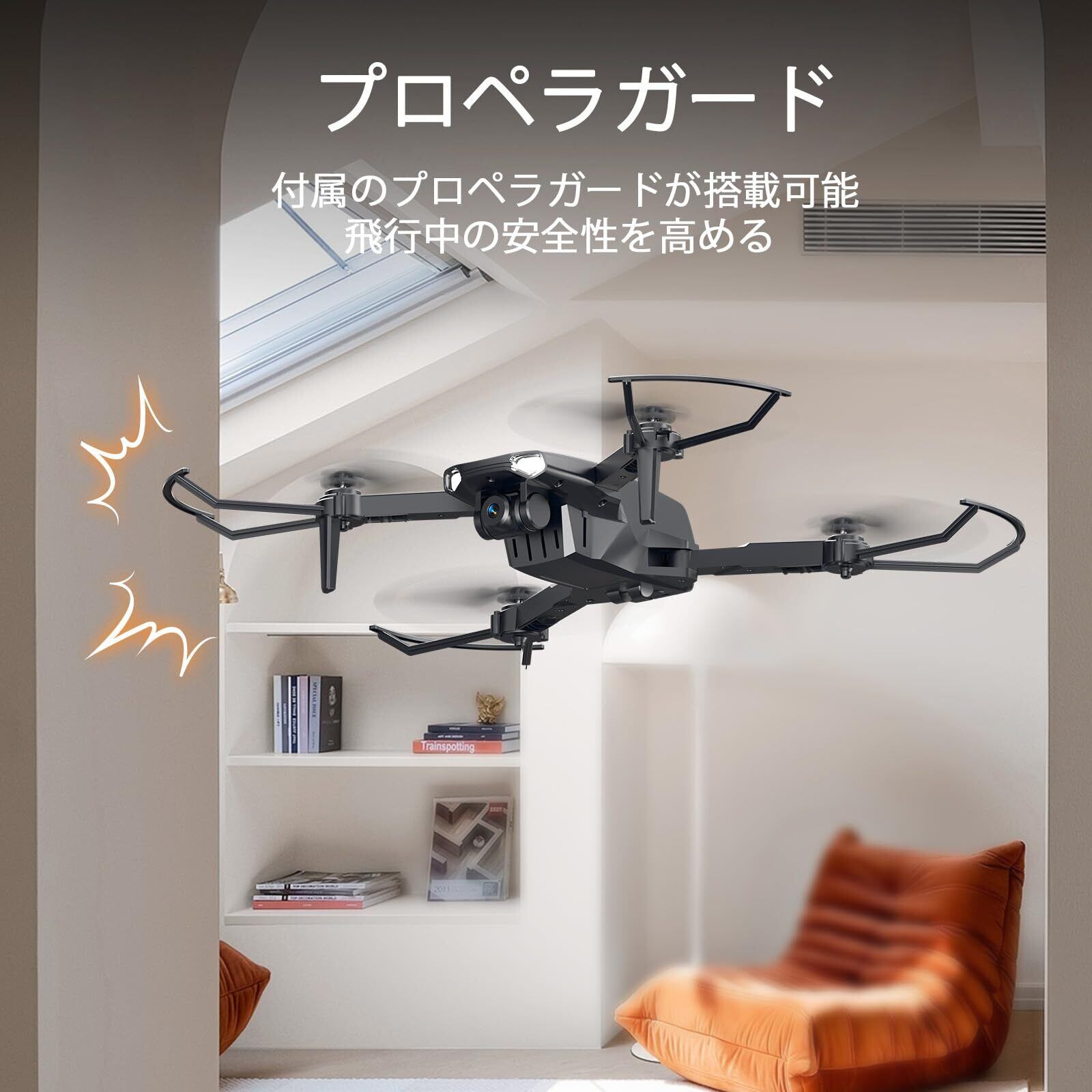 【プロペラガード】製品セットには、プロペラを衝撃から保護し、飛行中に損傷を防ぐために本体に取り付けられるプロペラガードが含まれています。同時に、室内で利用する際に、家具、壁なども保護することができます。使用時の安全性を高めます。