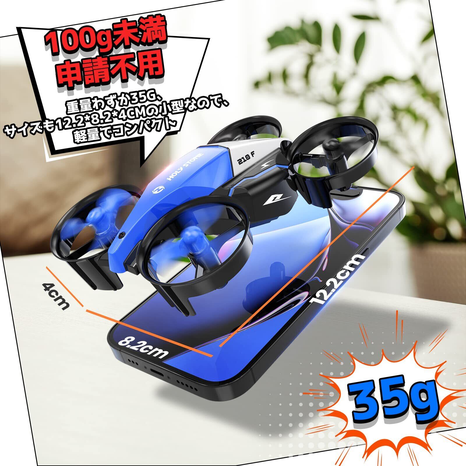 Holy Stone ドローン 100g未満 子供向け 陸空両用 おもちゃ 申請不要 小型 バッテリー3個 合計36分使用時間 FLIGHTモード LANDモード ランプ付き 初心者 クルーズ制御 トイドローン 手投げテイクオフ ヘッドレスモード 高度維持 2.4GHz モード1/2自由転換可 国内認証済み 誕生日ギフト HS210F ブルー