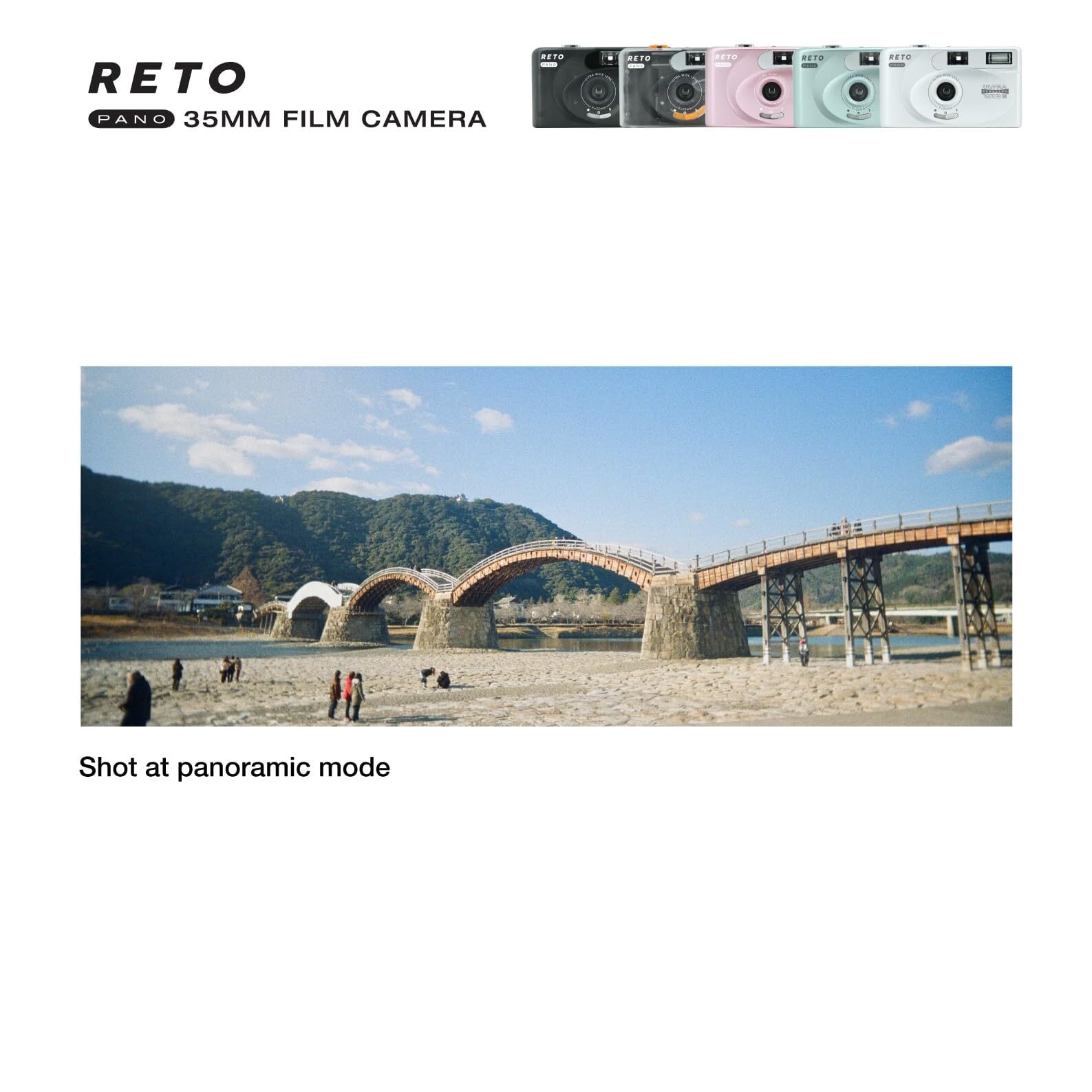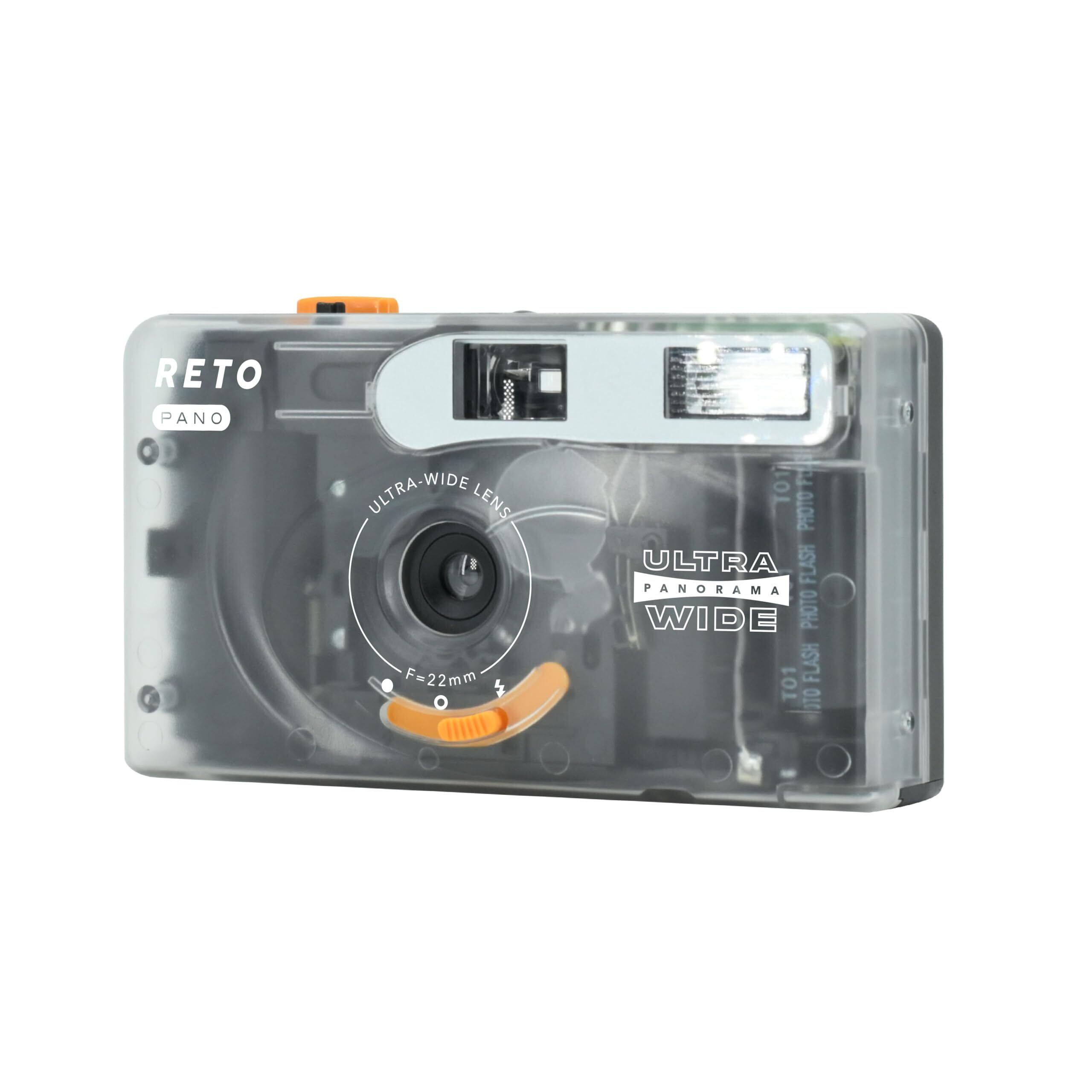 RETO PANO 35mmフィルムカメラ - 22mm広角レンズ、パノラマ、簡単スイッチ、シネマティックモード、レンズカバー、内蔵フラッシュ、再利用可能(フィルムと単4電池は付属していません) (シアーホワイト)