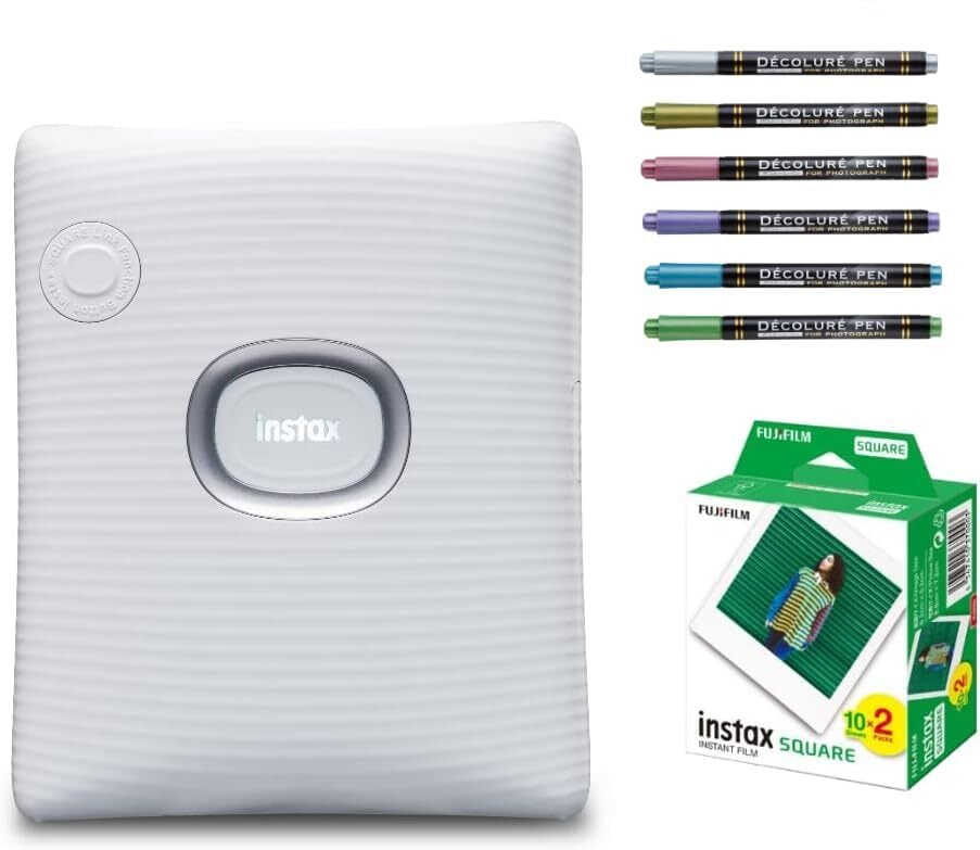 チェキ instax SQUARE Link スクエアリンク ましかくチェキ (フィルム20枚&ペン, アッシュホワイト)