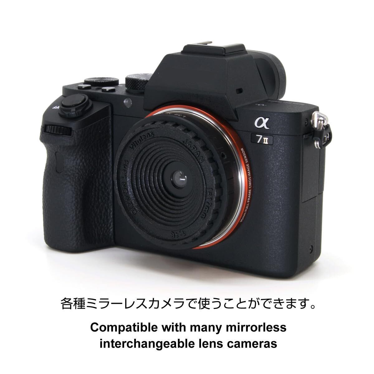 「写ルンです」のレンズを2枚使ったミラーレスカメラ用のレンズで、17mm広角(※35mmフルサイズセンサー搭載カメラの場合)での撮影が楽しめます。
