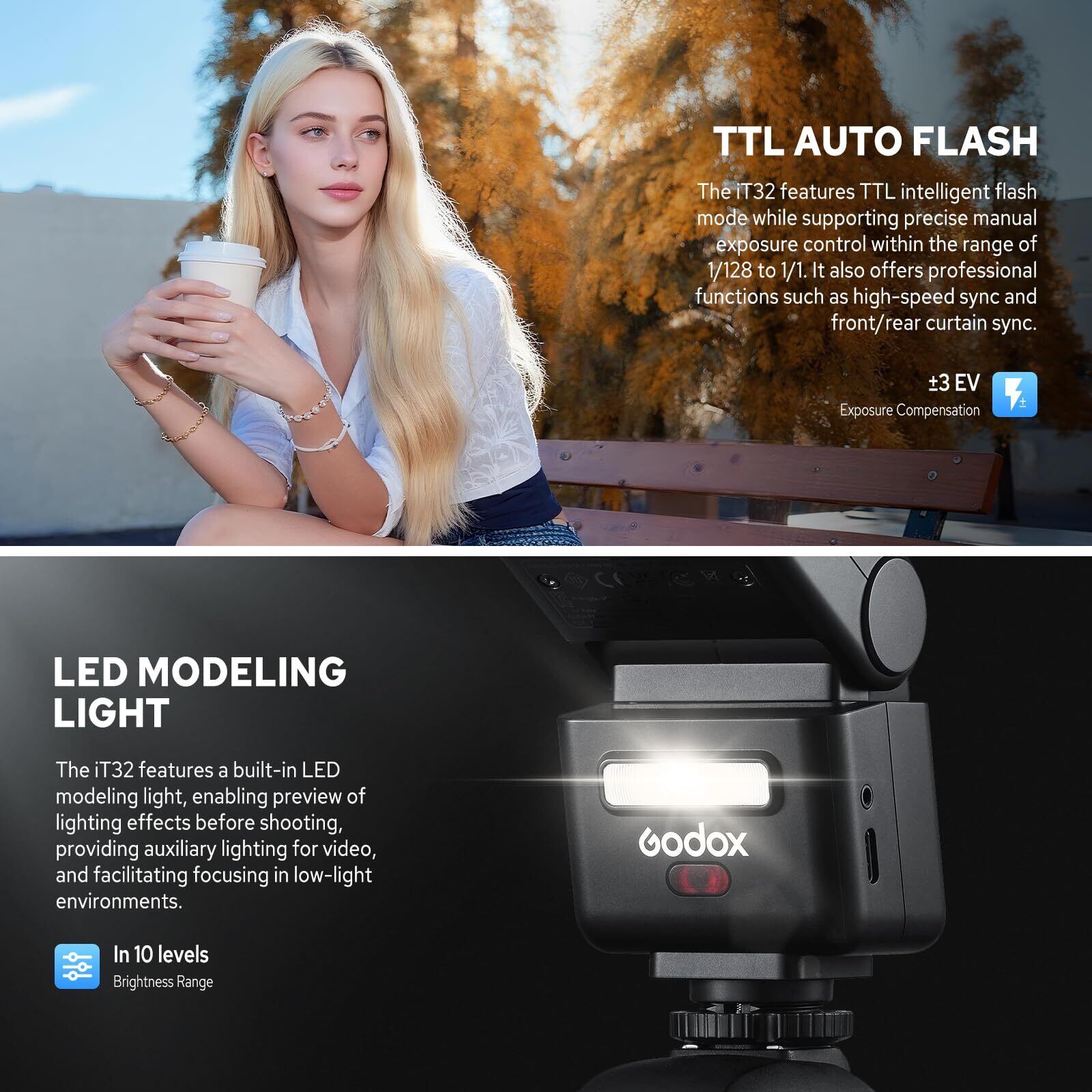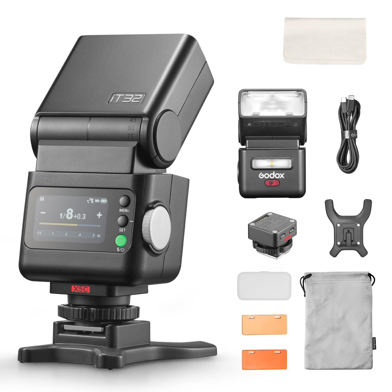 Godox iT32 ストロボ & X5-C トリガー カメラフラッシュキット キヤノン用 マグネット着脱式ホットシュー ホットシュー・トリガー一体型設計 TTL&HSS対応 タッチスクリーン フル発光約510回 1.5秒のリサイクルタイム ディフューザー・カラーフィルター・収納バッグ付属