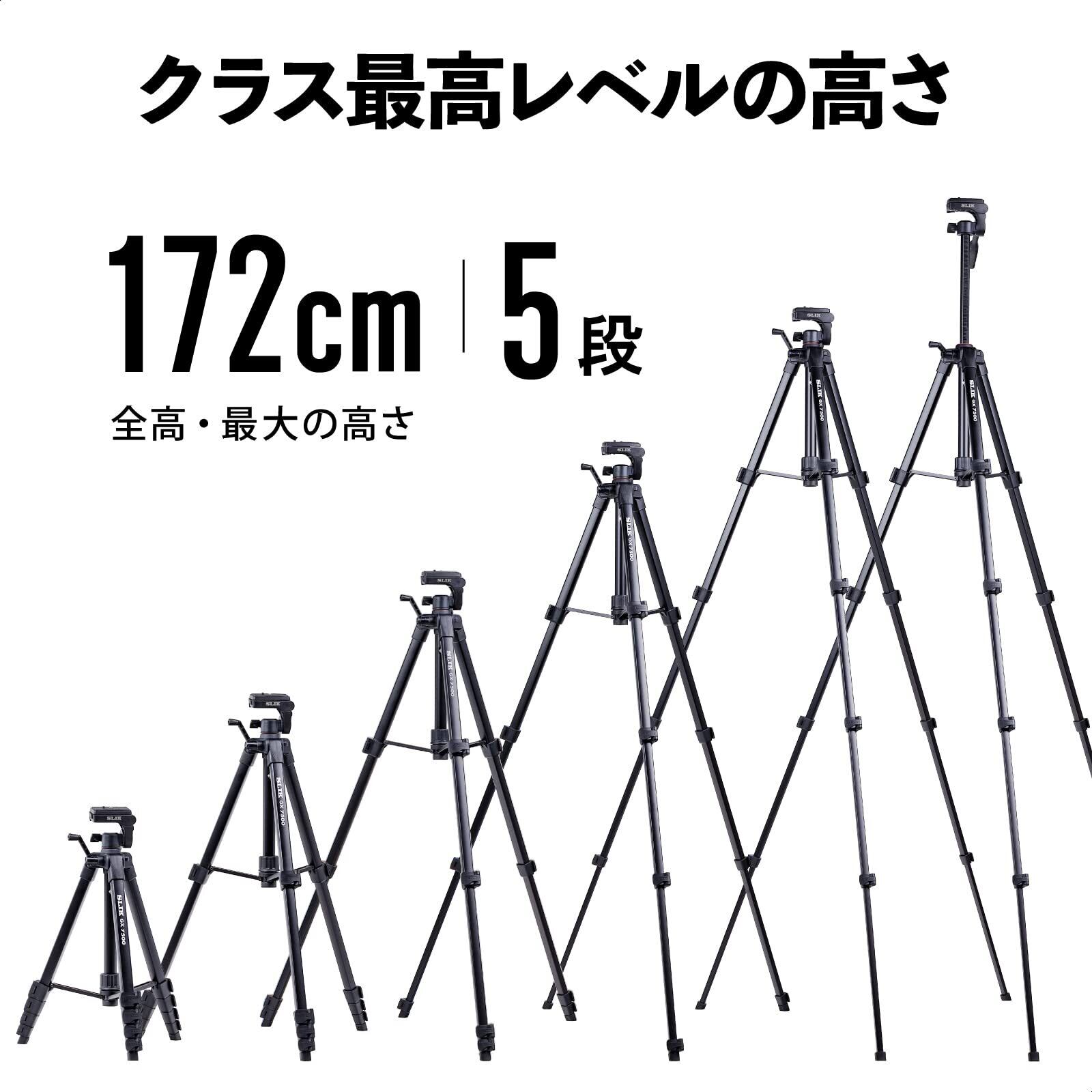 一回り太い24mm幅角パイプを上段に追加した5段モデルで、クラス最高の高さ「1,720mm」を実現。持ち運びはコンパクトながら、より高い位置からの撮影を可能にします。