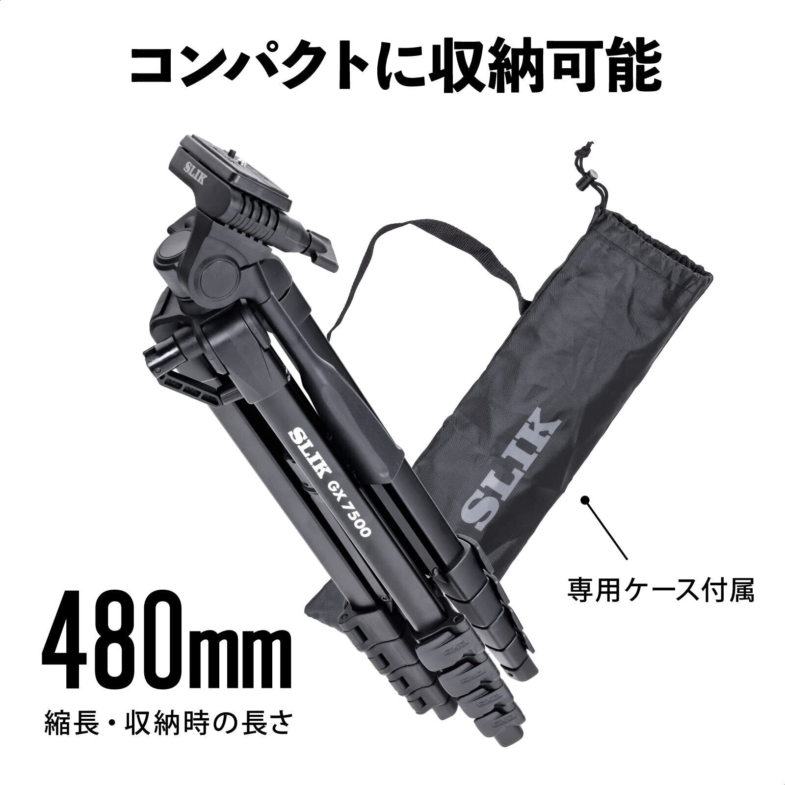 SLIK 三脚 GX 7500 3ウェイ雲台 最大高172cm 5段式 最大搭載重量1.5kg 5段 レバーロック クイックシュー式 217146