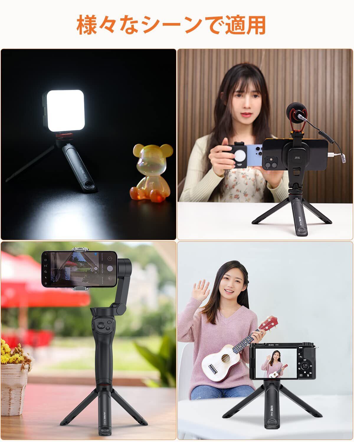 UURIG ミニ三脚 卓上 カメラ 三脚 カメラスタンド 1/4インチネジ スマホ ジンバル スタンド 小型 軽量 伸縮可能 折りたたみ コンパクト 持ち運びに便利 マイクロ三脚 シンプル 耐荷重2kg ブラック