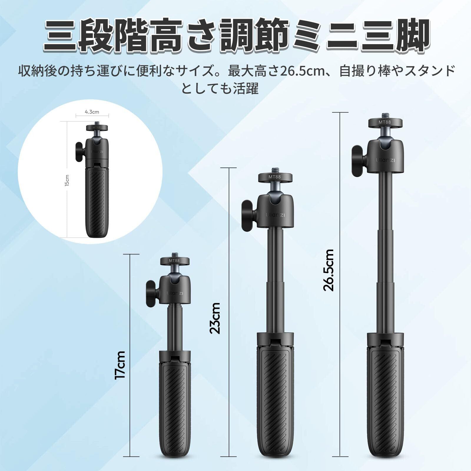 Ulanzi MT88ミニ三脚 カメラ三脚 3段伸縮 バックパック対応三脚 自撮り棒 卓上三脚 ベルクロストラップ付き 360度自由雲台 1/4ネジ 持ち運び便利 vlog ビデオ セルカ棒 三脚 折りたたみ OsmoPocket/Insta360ace/GoPro用/Sony用/Canon用/Nikon用/Android/iPhone17/16/15用/アクションカメラに対応 Clipmate