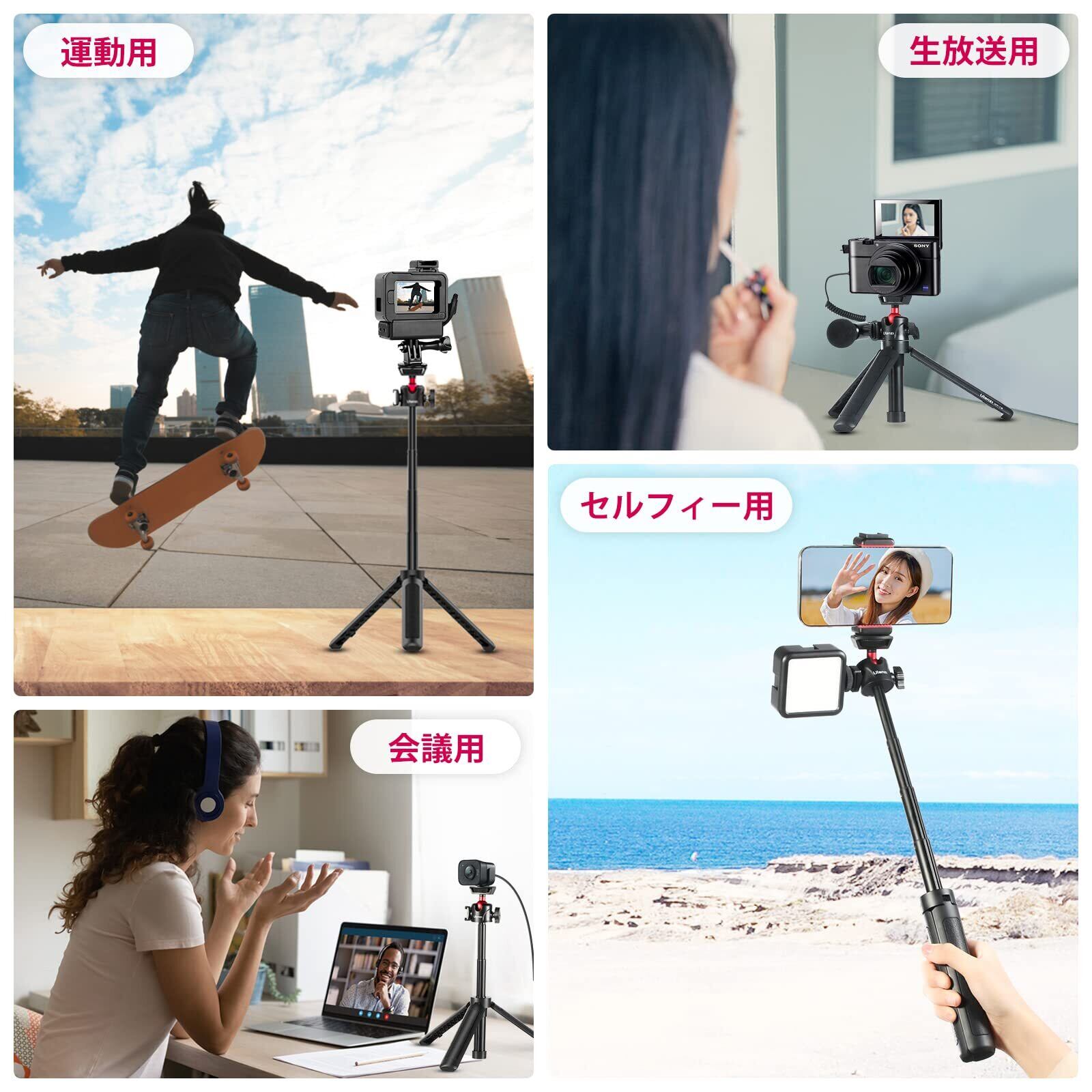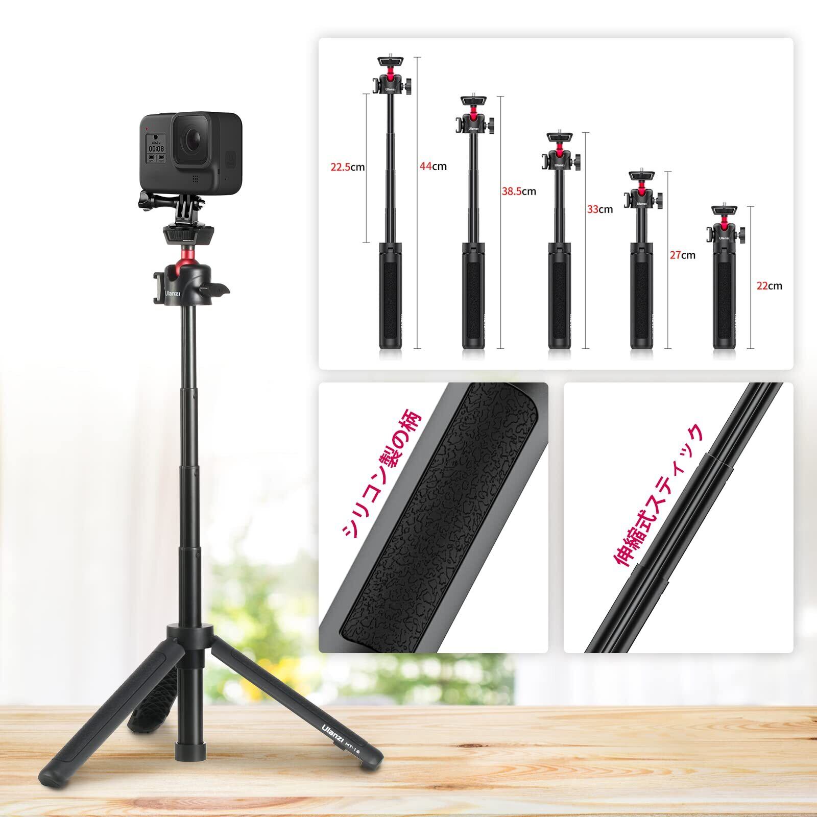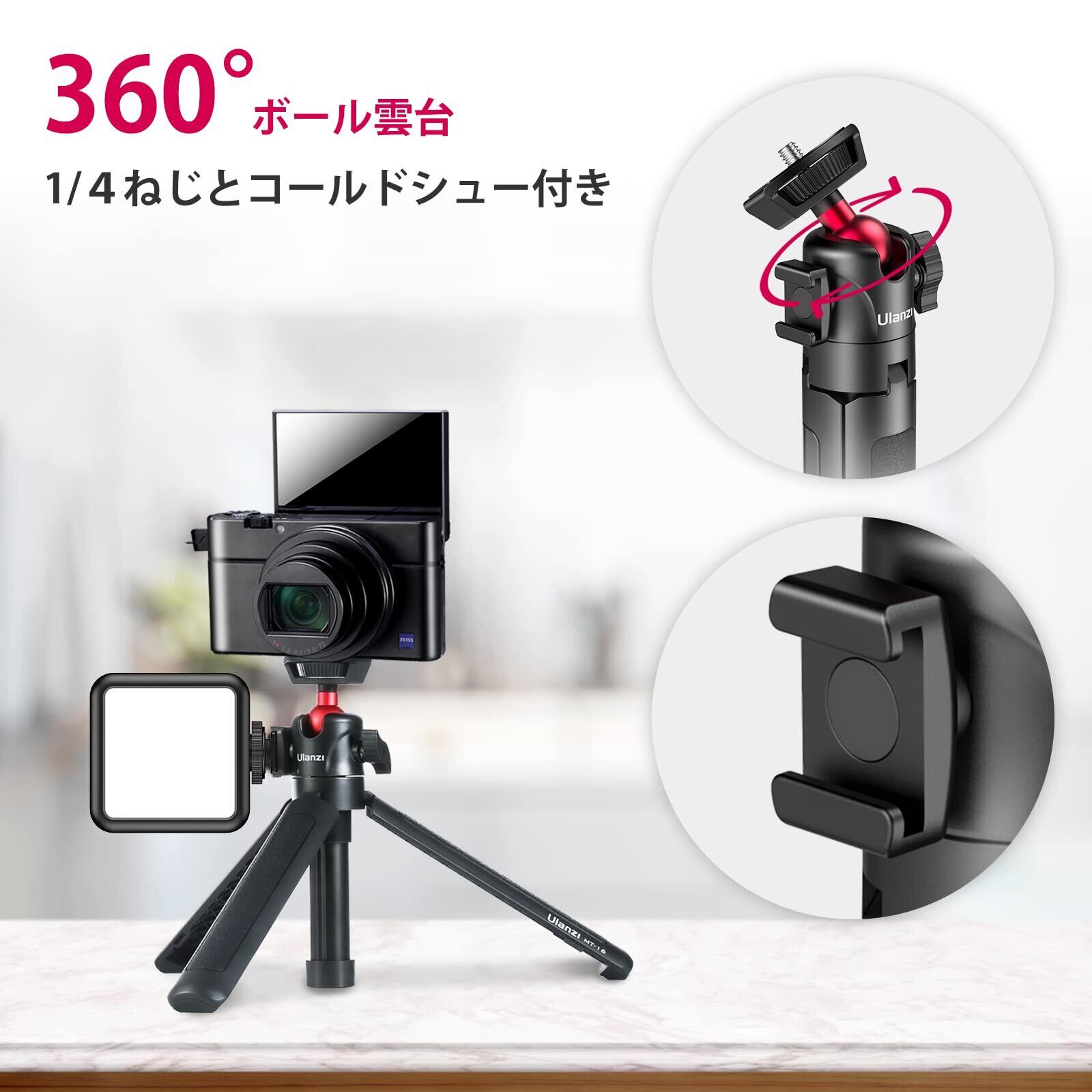 ULANZI MT-16 スマホ三脚 自撮り棒 伸縮式卓上三脚 ミニ三脚 携帯三脚 カメラ三脚 4段伸縮 三脚 軽量 卓上三脚 持ち運びに便利 Gopro用アダプター 360°雲台 コールドシュー付き iphone/Android/Gopro/Osmo Pocket/Vlog/TikTok用旅行三脚