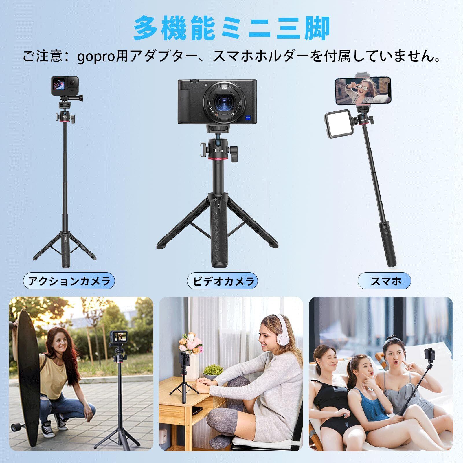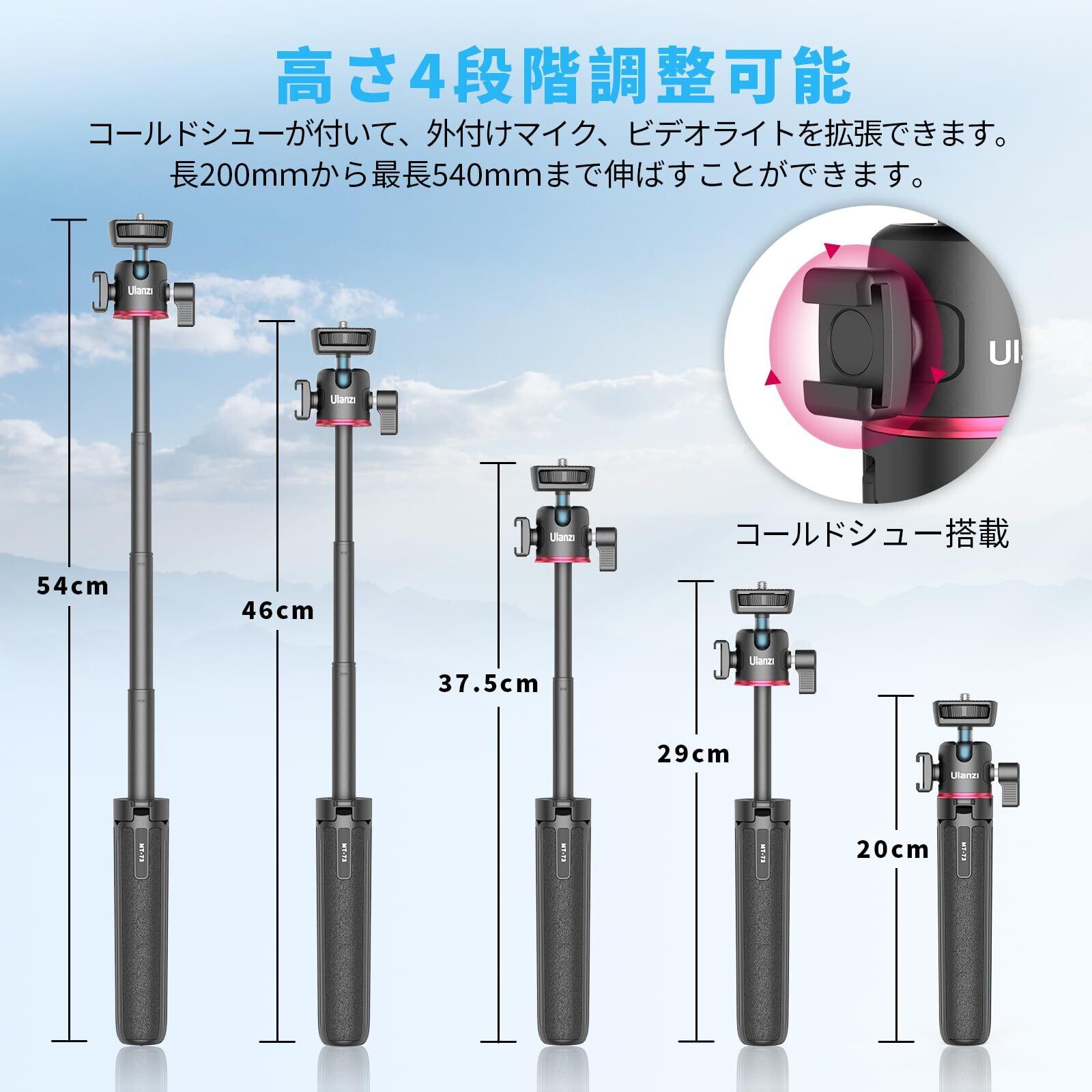 Ulanzi MT-73 カメラ三脚 卓上 Gopro用三脚 自撮り棒 4段伸縮 360度雲台 撮影安定 持ち運び便利 軽量 ミニ コールドシュー ストラップ付き OSMO POCKET 1、2/iPhone/Gopro/Dji Osmo Action/Sony/Canon/Vlog TikTok用