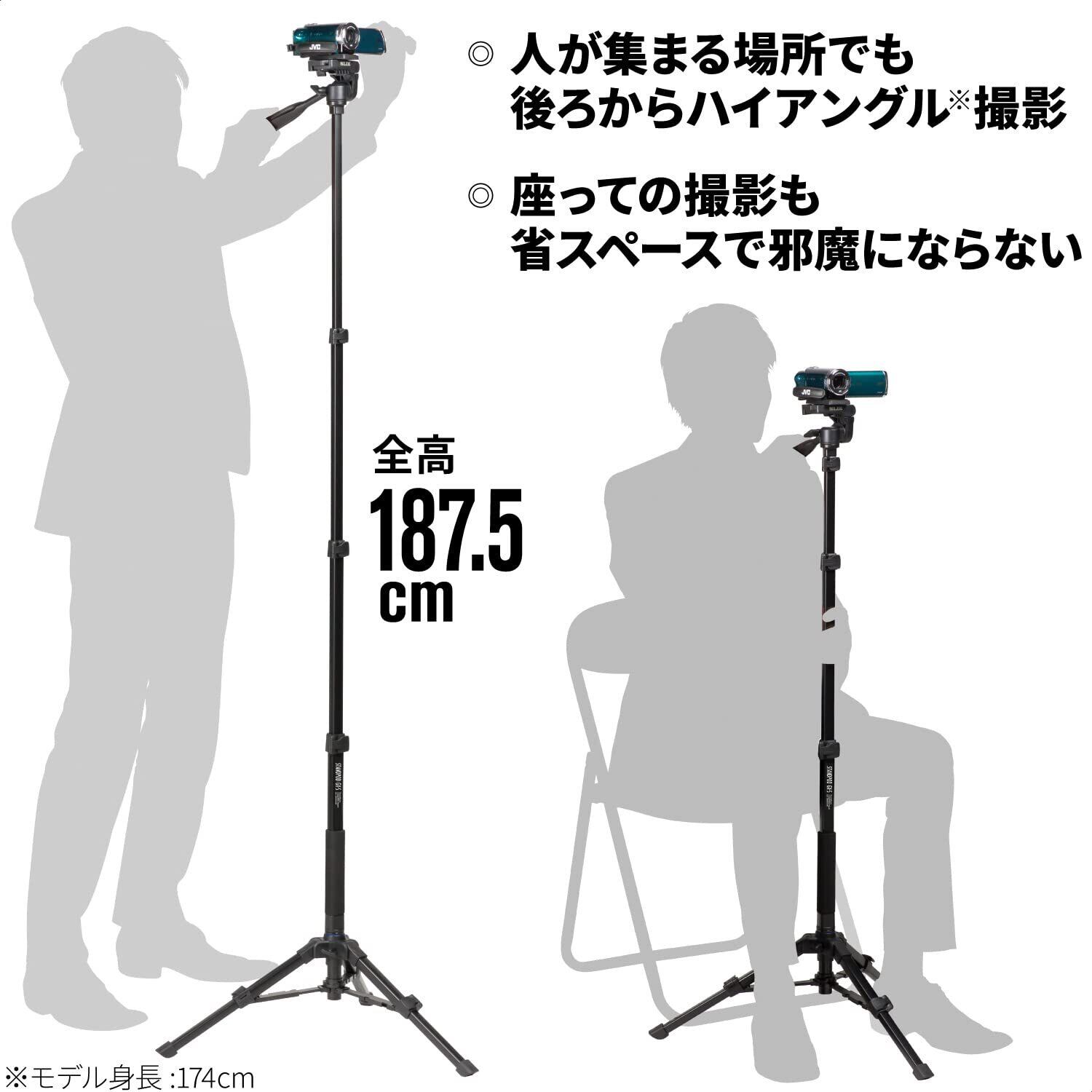高さは4段階での調整が可能で、最大1875mmと視点を超える高さまで伸ばすことができます。運動会など人の並んでいる後ろからの撮影も可能にします。また、調整はレバー式のロックを採用しているので、初めての方でも簡単にセッティングが行えます。