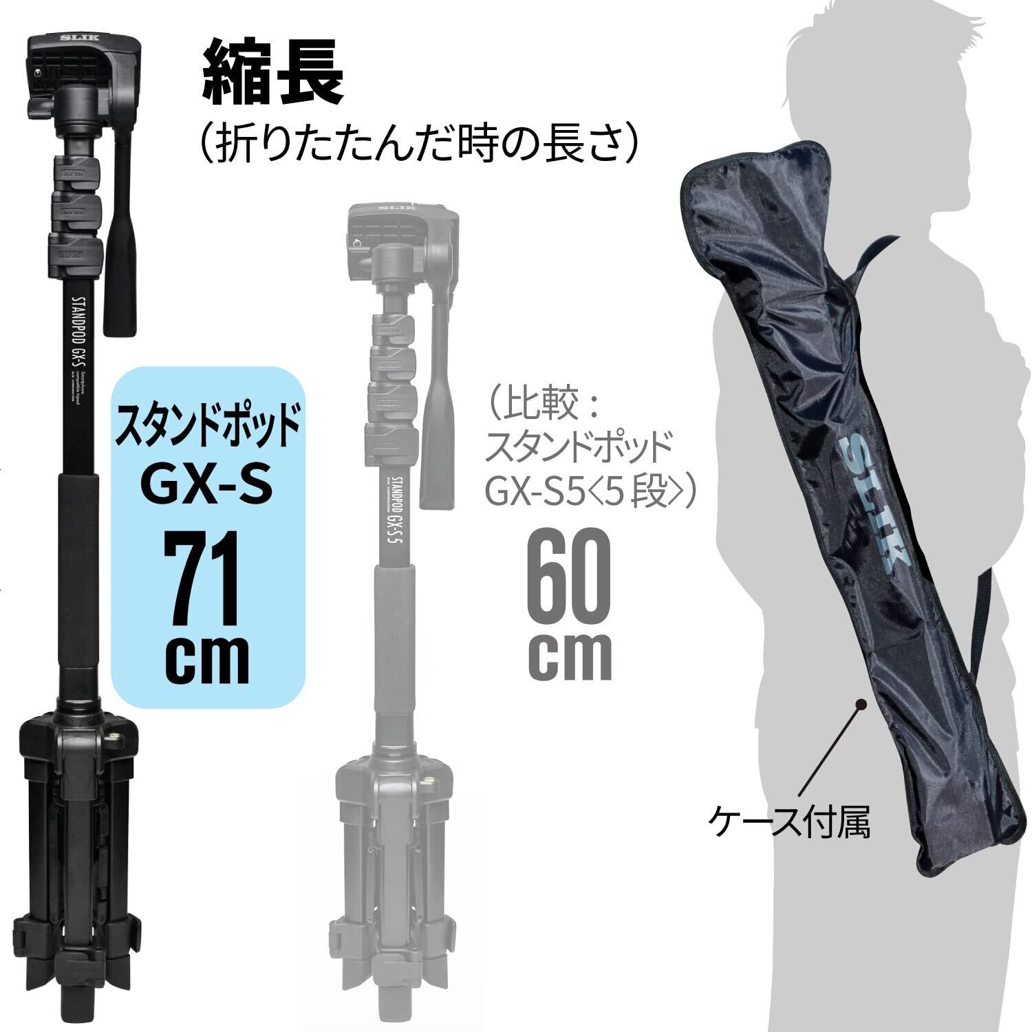 スリック SLIK スマホ自立一脚 スタンドポッド GX-S ビデオカメラ対応 レバーロック式 24mmパイプ径 3WAY雲台 全高1875mm クイックシュー式 STAPODGXS