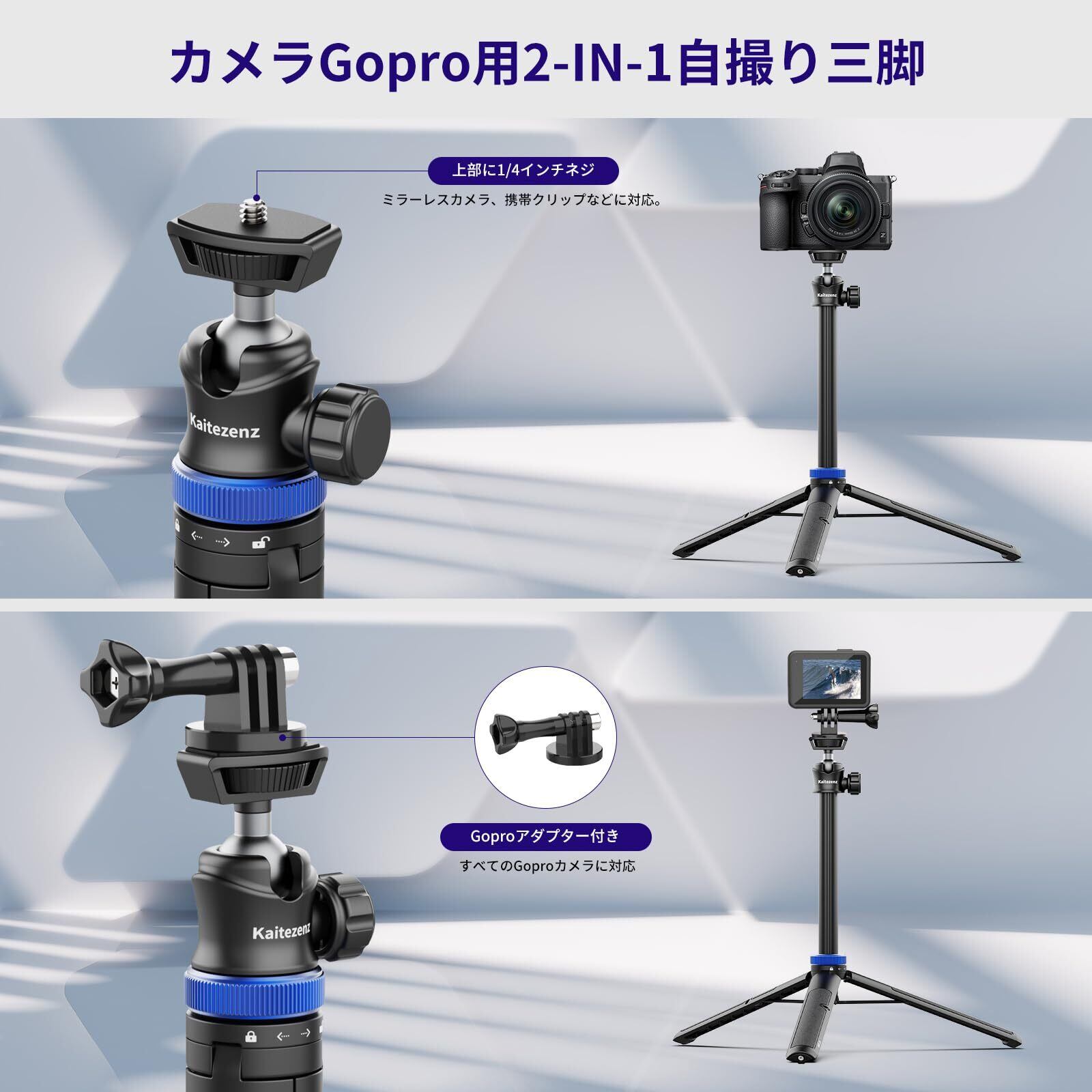 ▶【GoProアダプター付き】2イン1三脚は、カメラ三脚としてだけでなく、ハンドヘルドグリップや自撮り棒としても使用できます。Kaitezenz Gopro三脚には、すべてのGopro、djiアクション、その他のアクションカメラ用のGoproアダプターが付属しています。カメラ三脚の上部にあるユニバーサル1/4インチネジは、すべてのカメラに適合します。 insta360カメラとソニー、キヤノン、ニコンコンパクトカメラに対応。