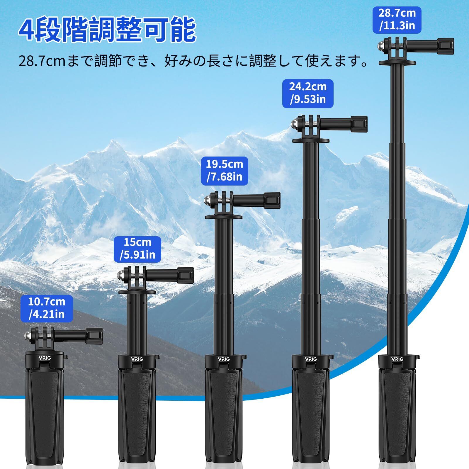 VRIG dji osmo action 5 pro 三脚 アクションカメラ 三脚 28cm延長ポール 持ち運び便利 GoPro Hero 13/12/11/10/9、DJI Osmo Pocket 3、Osmo Action 6/5 Pro/4/3、 Insta360 go ultra/X5/X4/Ace Pro 2など対応 TP-29