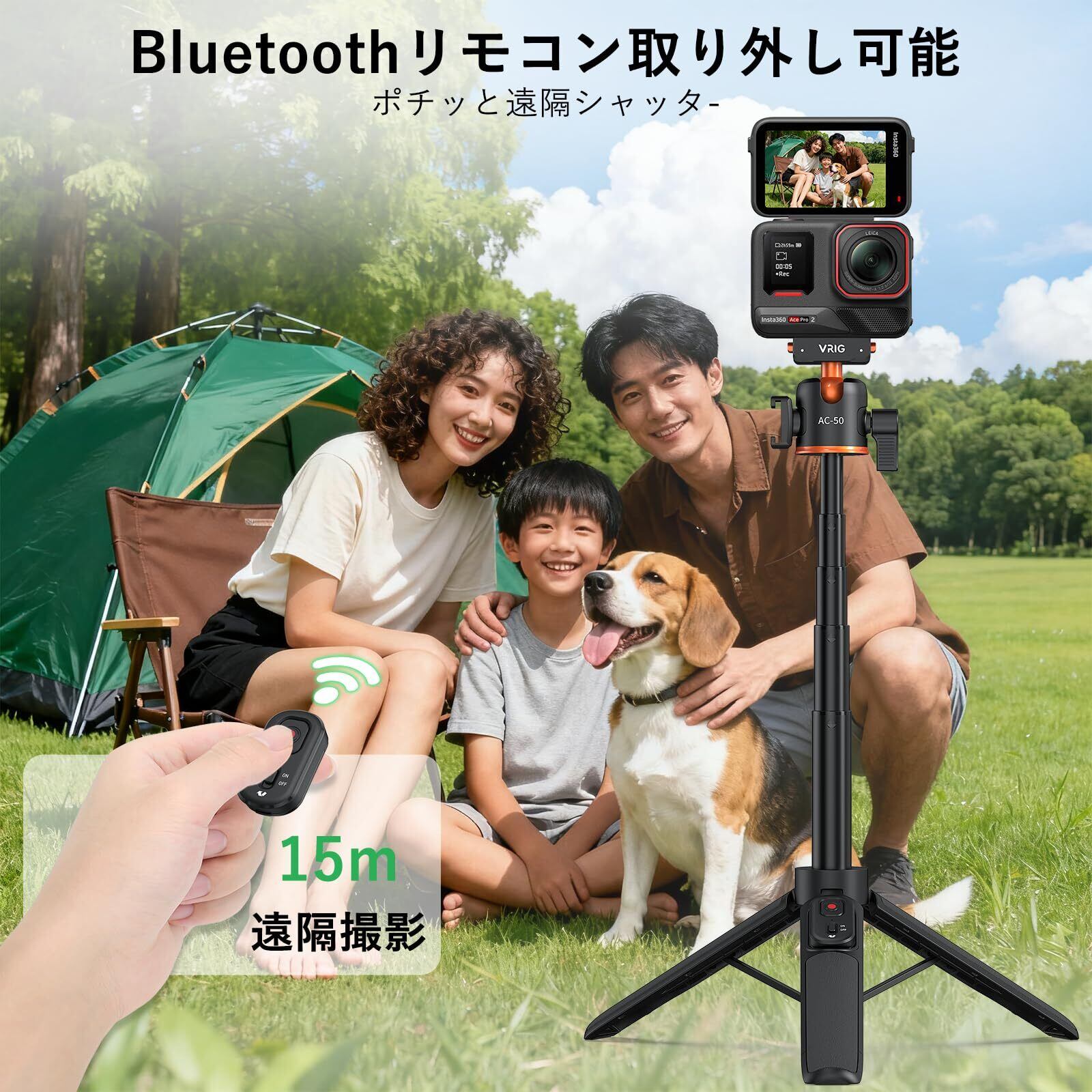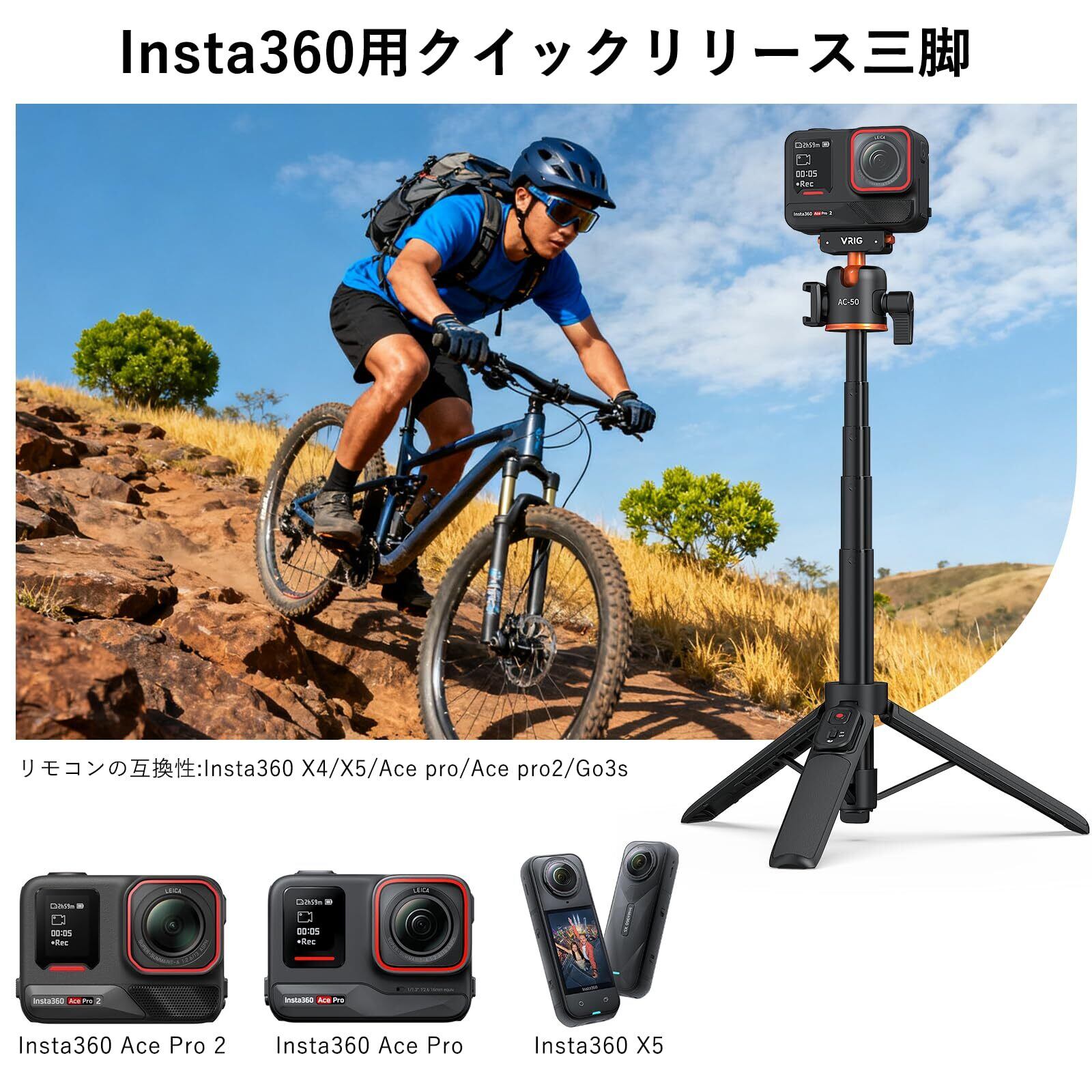 VRIG Insta360 Ace Pro 2用三脚 Insta360 自撮り棒 磁気マグネットマウント クイックリリースアダプタ 4段伸縮 最大54cm 360度回転 自由雲台 リモコン付き 軽量 持ち運び便利 Insta360 X4 Air/X5/Ace/Ace Pro/Ace Pro 2対応 AC-50