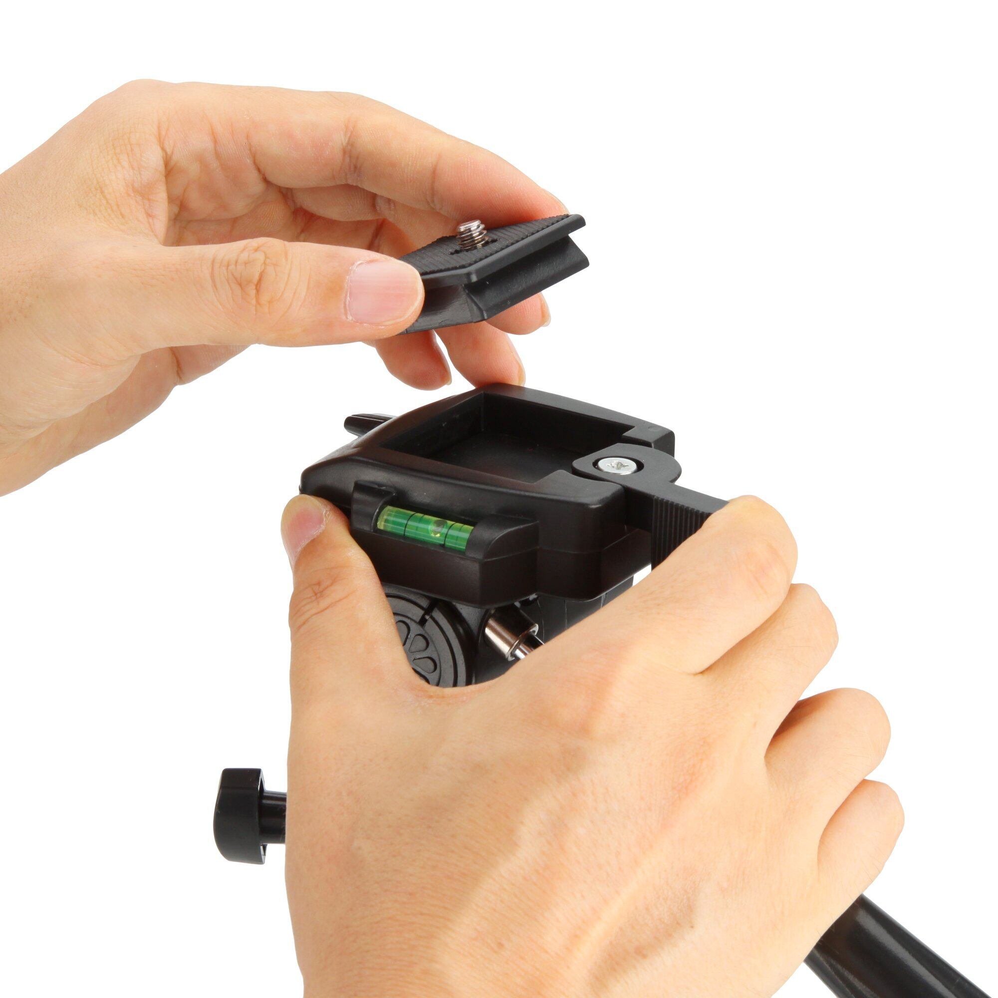 伸長128cm、縮長44.5cm、重量730g、三脚ケース、水準器、クイックシュー付き。ビデオカメラやデジタルカメラに最適。