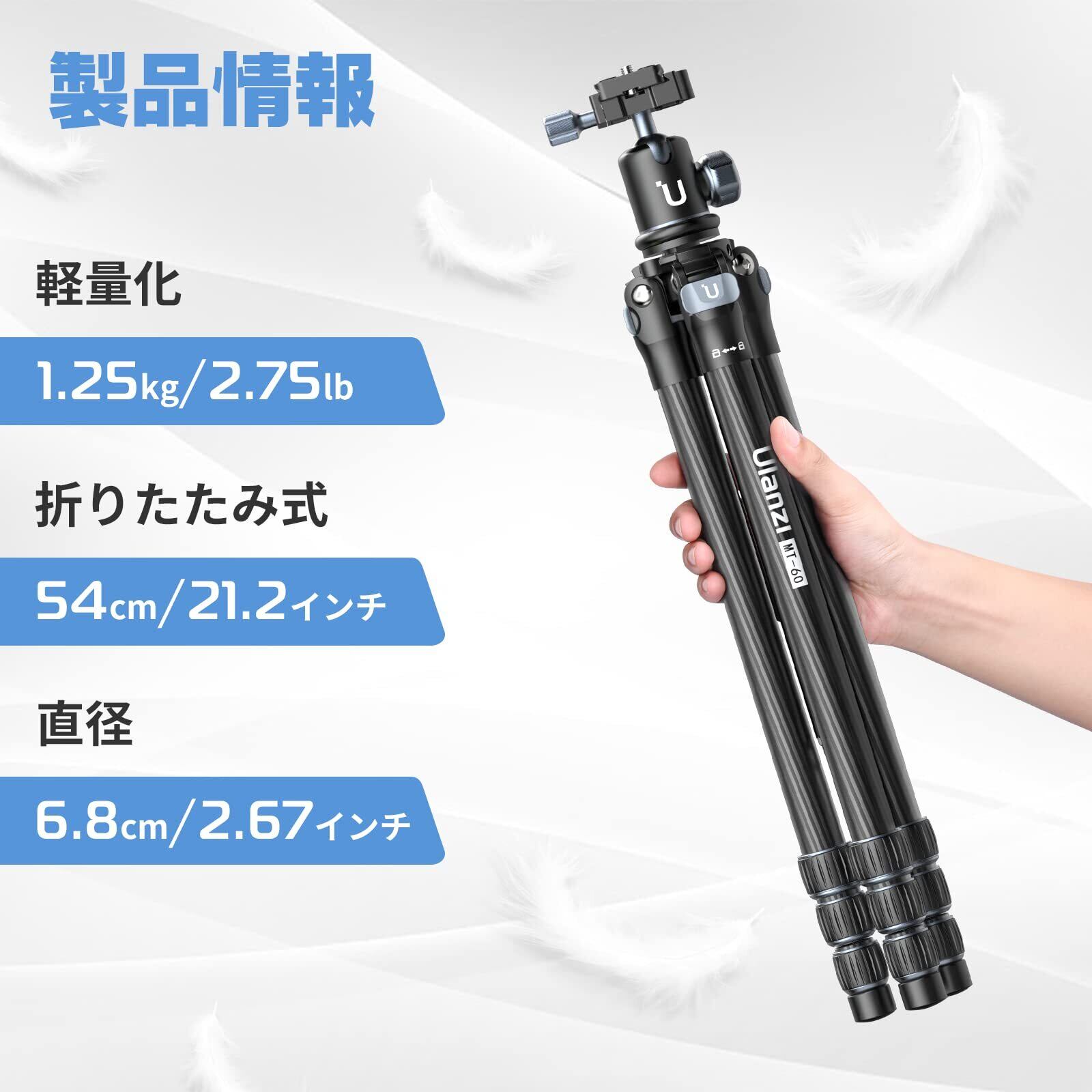 Ulanzi MT-60 三脚 カーボン三脚 カメラ三脚 一脚伸縮可変式 3Way雲台 4段階伸縮 トラベル三脚 中心軸付き ローアングル撮影 スマホ三脚 アルカスイス対応 収納袋付き 最大耐荷重10キロ ビデオ/一眼レフカメラ/望遠レンズ/スマホ等適用