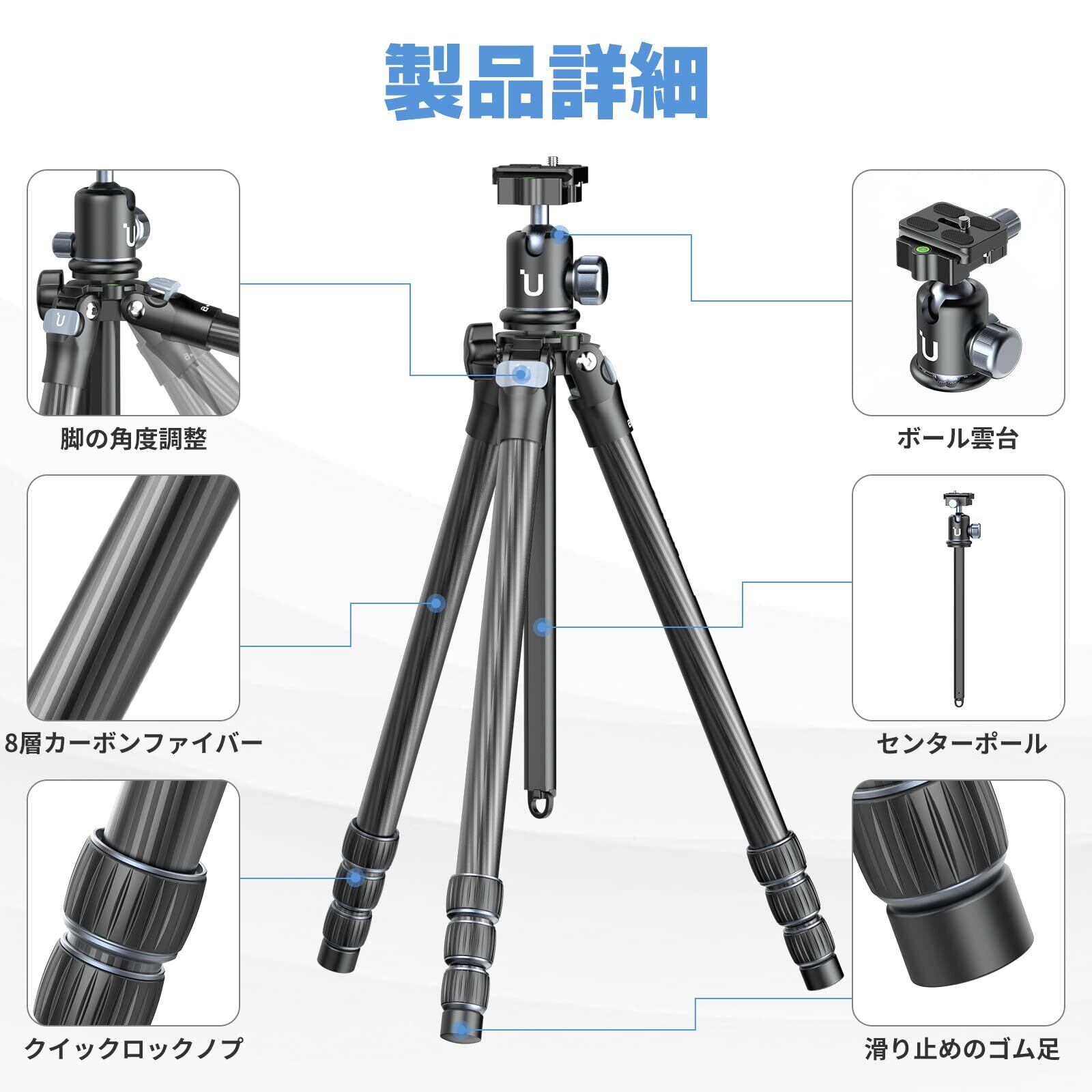 【軽量で安定なカーボン三脚】Ulanzi MT-60三脚は、脚のチューブは8層の異なる角度のカーボンファイバーから高温硬化、高圧強化で作られ、堅さがより強く、使用寿命がより長いです。コンパクト、軽量、耐久性、柔軟性など、三脚に求められるすべてを備えています。軽量のアルミ合金を採用し、最大耐荷重は10kg、三脚重量はただ1.25kg、頑丈で安定した構造となっています。