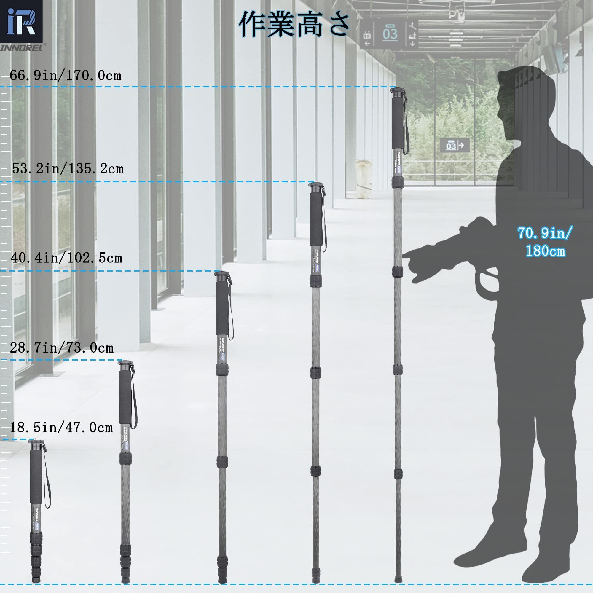 INNOREL 一脚 カメラ用 カーボン製 26lb/12kg耐荷重 5セクション伸縮可能 コンパクト 便利 軽量 旅行用(RM325C)