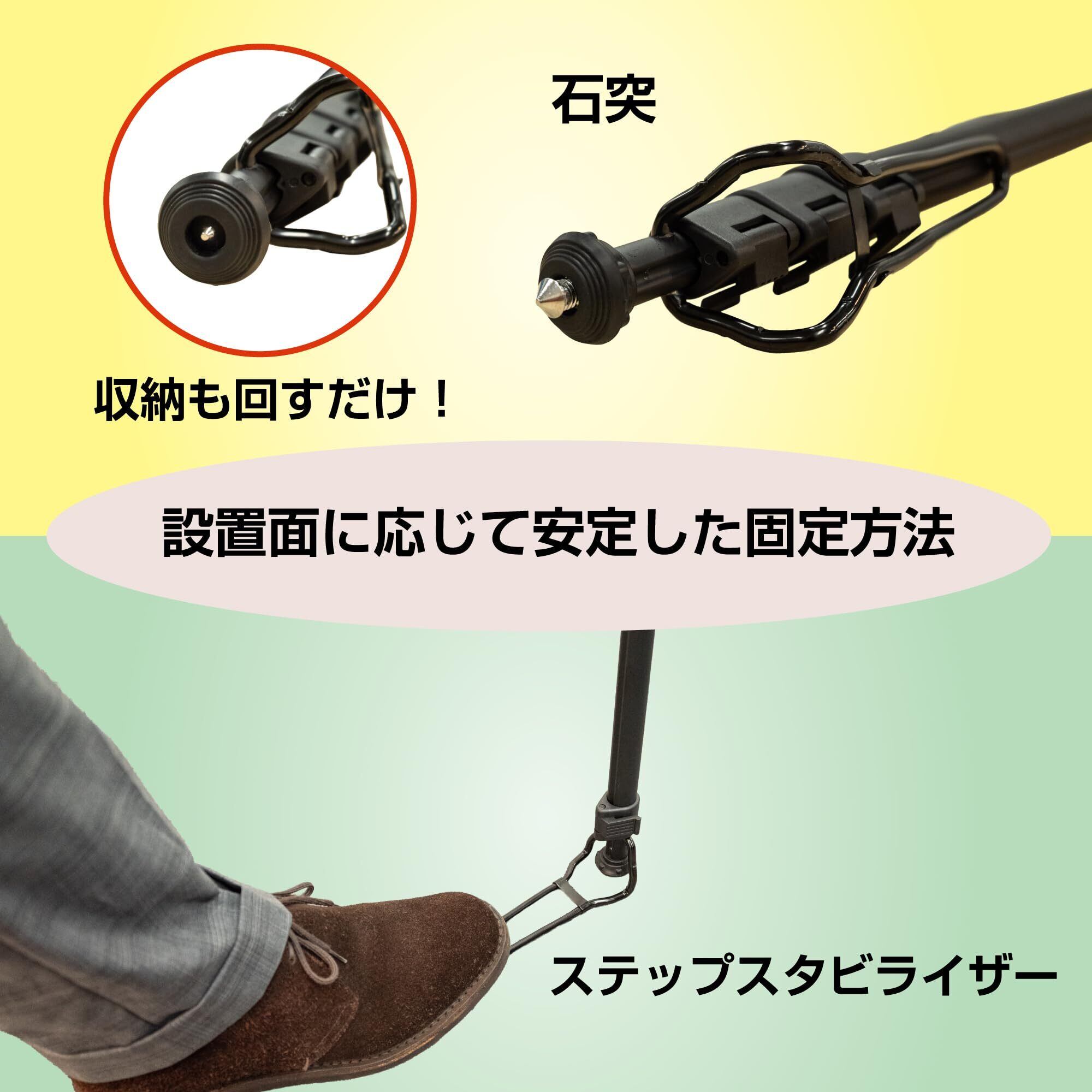 ロックレバーにより最短61.5cm~最長178cmまで4段階に伸縮・調整が可能