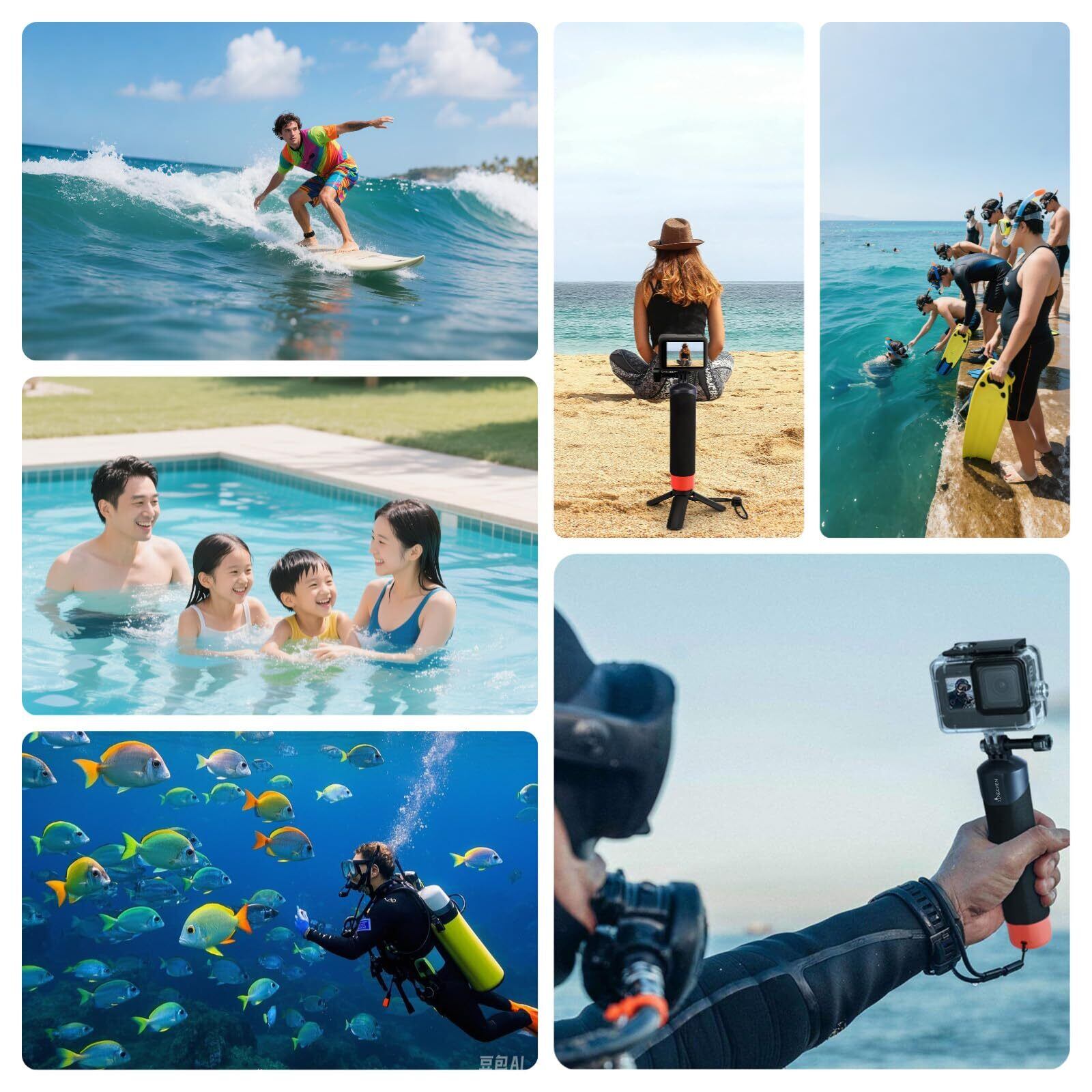 【フローティング 対応機種】go pro hero 13、gopro 12 、gopro 11、gopro10、gopro9、gopro8 、gopro7 、gopro6、gopro5、gopro max、dji osmo action 5 pro、dji osmo action 4、dji osmo action 3、DJI Action 2、Insta360 ONE RS、Insta360 Ace、Insta360 Ace Pro、Insta360 Ace Pro 2、AKASO、Fusion、 SJCAM、 YICAMなど、ほとんどのアクションカメラや水中カメラに対応。