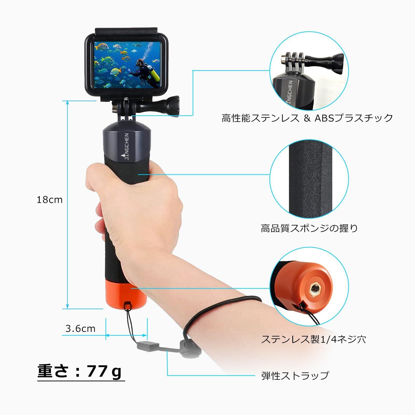JINGCHEN フローティングハンドグリップ 水中ダイビング 浮き ハンドグリップ 自撮り棒 gopro アクセサリー 防水 セルカ棒 dji osmo action 5 pro/4/3/2 gopro13/12/11/10/9/8/7/6/5/4/3/Insta360 Ace Pro/AKASOなどのアクションカメラ マウント