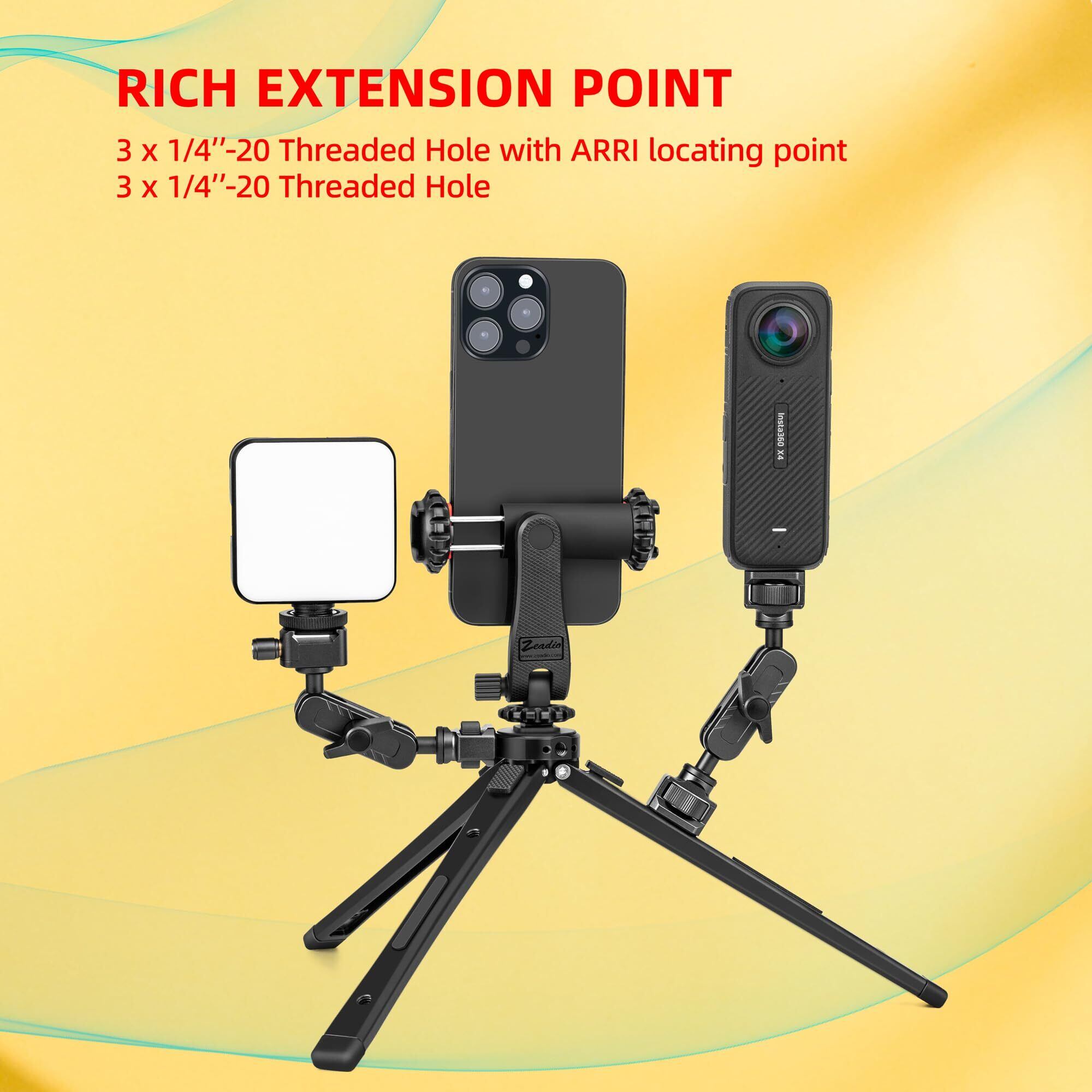 Zeadio ヘビーデューティ 金属三脚スタンド - 高さ調整可能 多用途 小型卓上三脚 カメラ・ジンバル・アクションカム・ビデオカメラ・マイク・LEDライトなど対応 (耐荷重40kg)