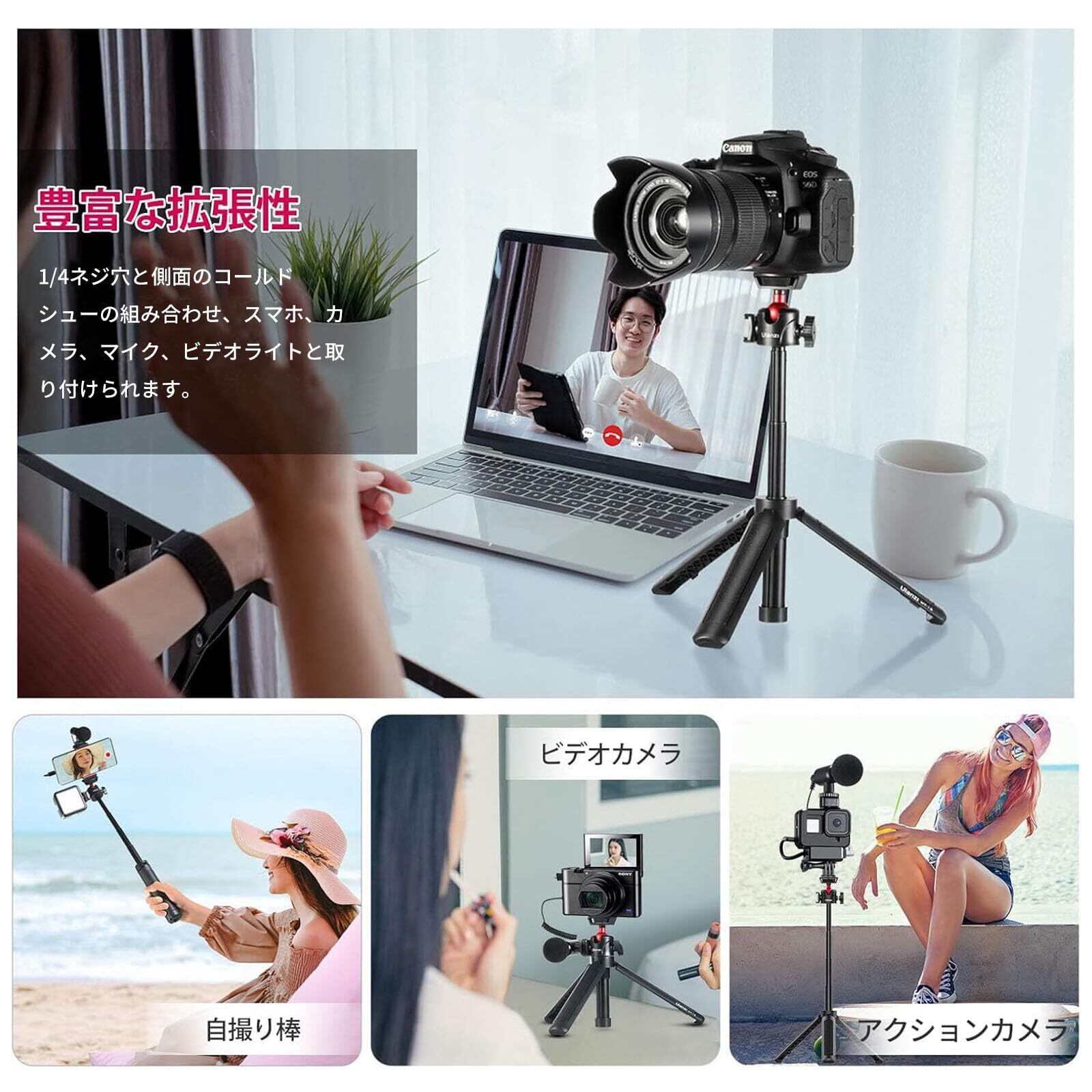 【新しいモデル】Ulanzi 三脚は新しいデザインを発表し、従来のモデルより長くて、拡張性が豊富になります。横側はコールドシューマウントがあり、スマホ、ミラーレスカメラ、ビデオカメラと他のデバイスを接続するときにLEDライトやマイクなど動画撮影に必要な機材をマウントできます。【要注意】パッケージ内容は三脚のみです。予めご了承ください。
