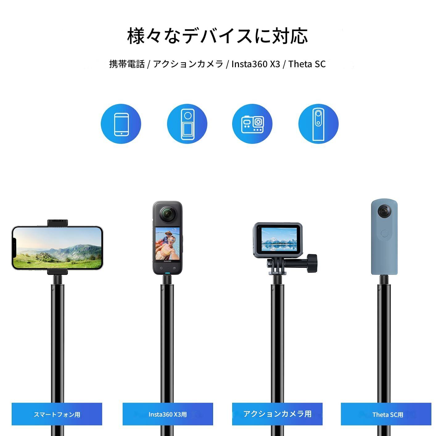 パノラマカメラ/アクションカメラに対応 バレットタイム回転ハンドルデスクトップ三脚、110cm自撮り棒セット付き
