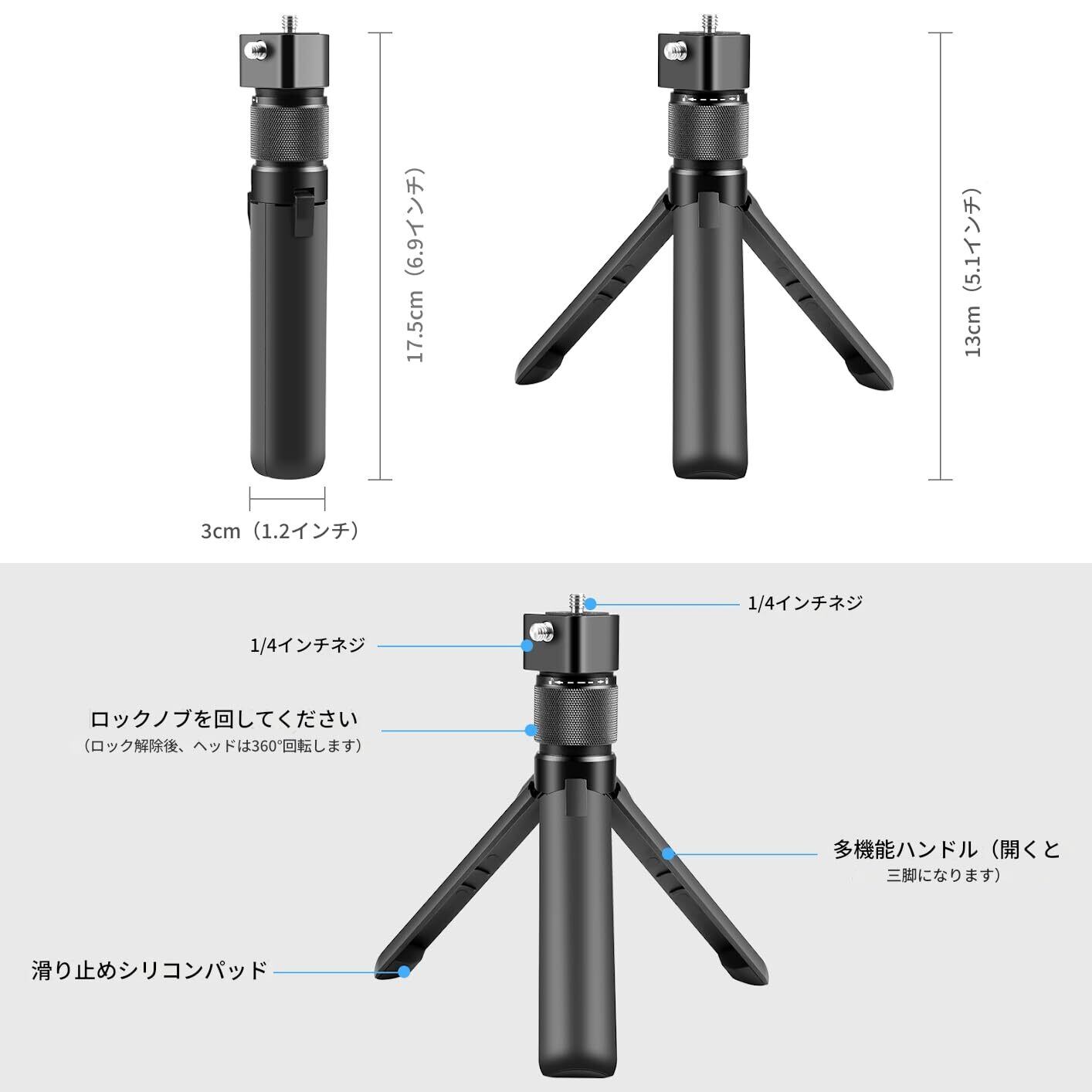 特徴 パンハンドル&卓上三脚の2WAY仕様