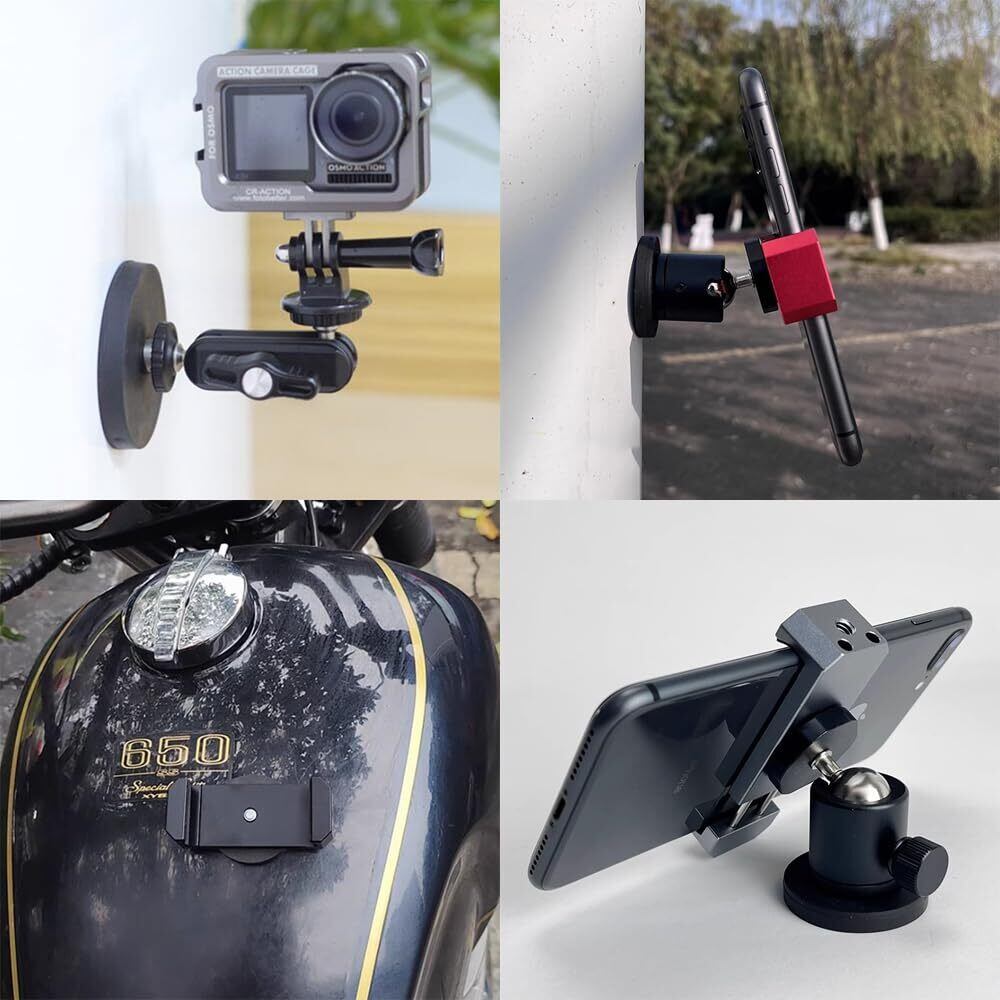 アクションカメラ 磁気吸盤 1/4ネジ マグネット 雲台 ゴム被覆 車載 スマホホルダー 防犯カメラ 一眼レフ カメラアクセサリー (66mm)