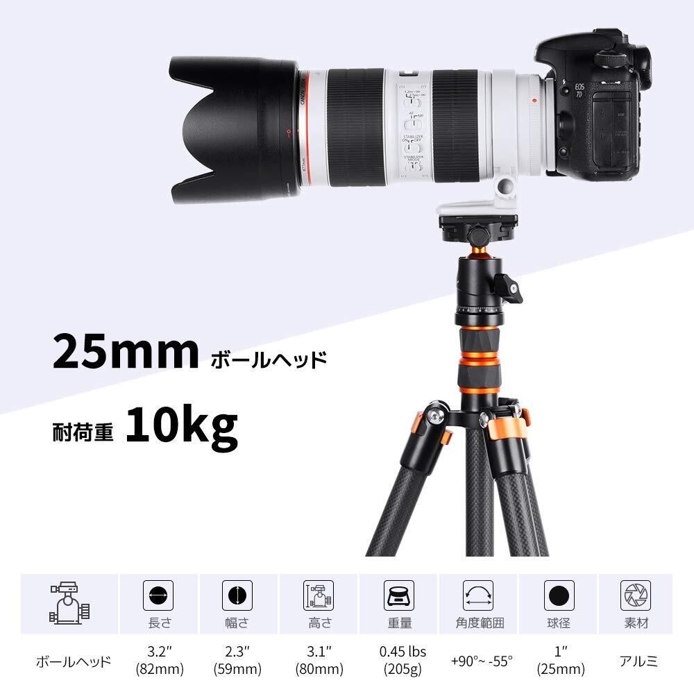 耐荷重&耐久性:雲台は25mm直径の高品質アルミ製ボールヘッドを採用しており、最大荷重は8kgなので、双眼鏡、SLR、デジタルカメラの損傷を心配する必要はありません。