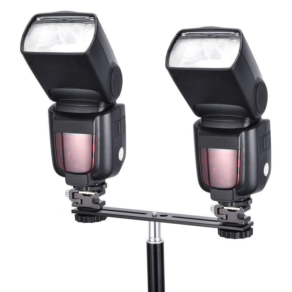 【自由に調節】カメラ シューブラケットの双頭は標準1/4 "ネジ付きのホットシューデザインで、4cmから18cmまでの間に距離を自由に調整できます。