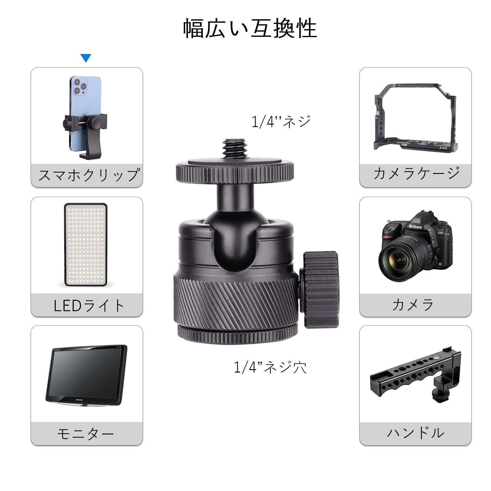 【 幅広い互換性】上部ネジ:1/4インチ(カメラ・マイク・モニター・LEDライトなど対応)底部ネジ穴:1/4インチ(各種三脚・一脚・スライダー等に装着可能)。