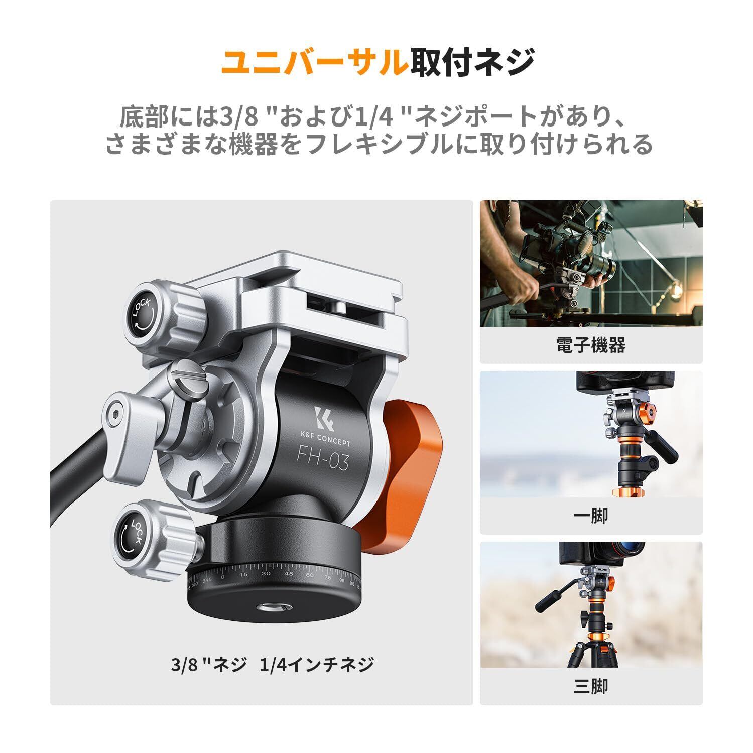 K&F Concept フルード雲台 スムーズで安定した三脚用フルード雲台 パン/ティルト用 アルカスイス互換フルード雲台 最大荷重6.61ポンド/5kg