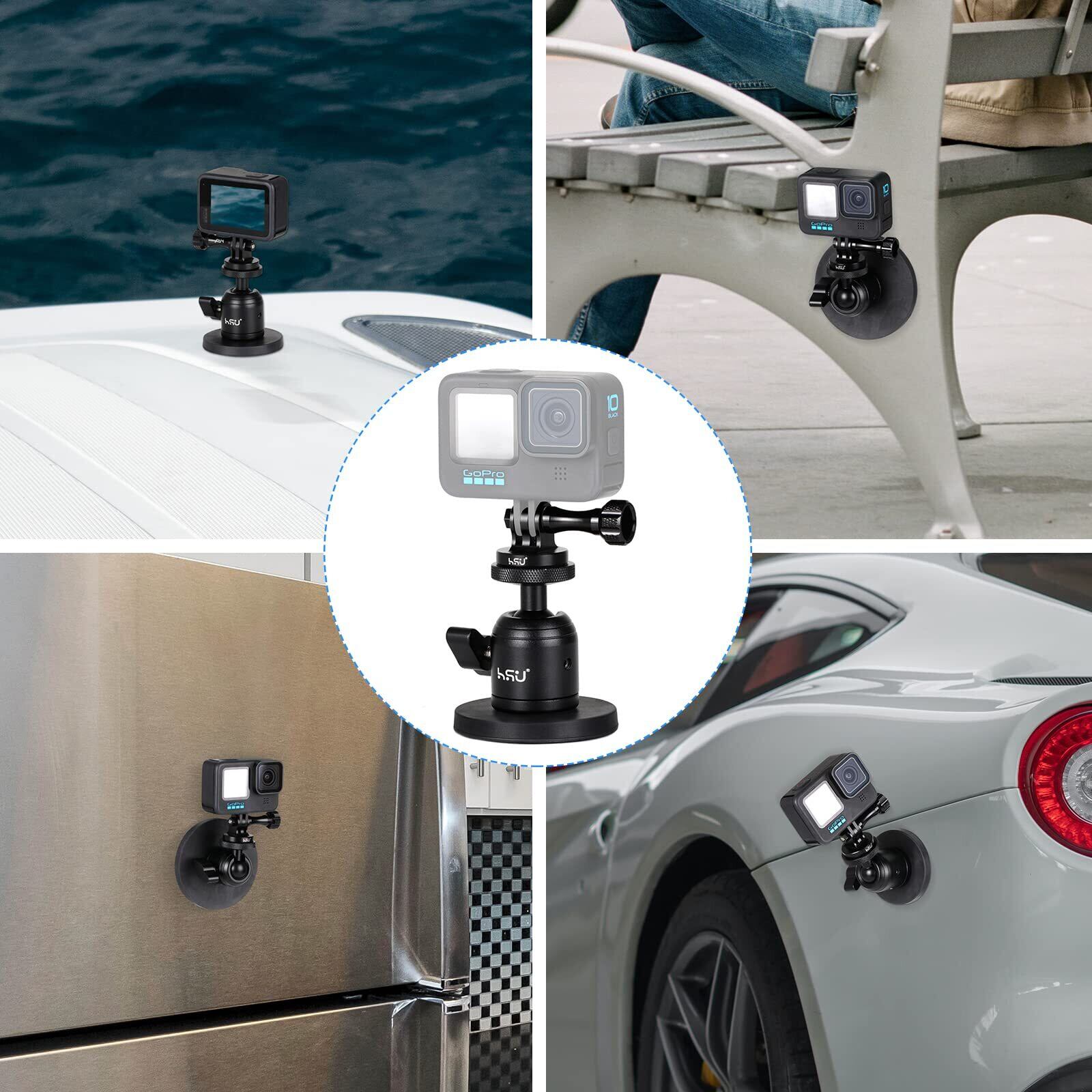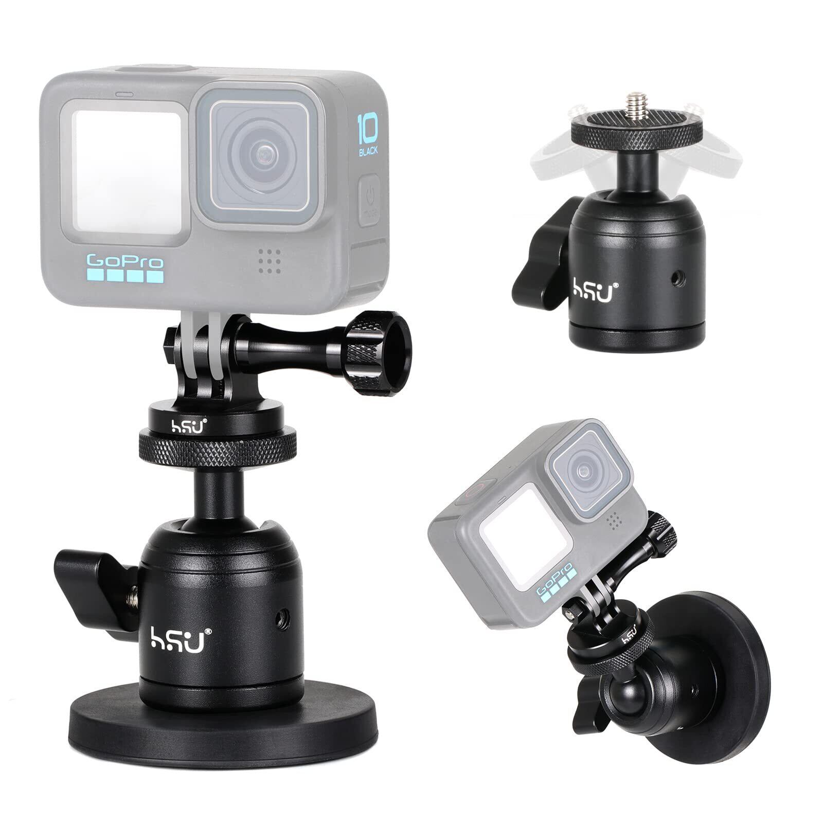 HSU 雲台 マグネット カメラマウント 磁気スタンド 360°回転可能 自由雲台 マグネット 1/4ネジ 付けのアルミ製 三脚アダプター 車載カメラマウント 一眼レフ/ストロボ/DSLR/GoPro Hero13 /12/11/10/9/8/Max/ insta360 全般対応及び他の アクションカメラアクセサリー (直径66MM)